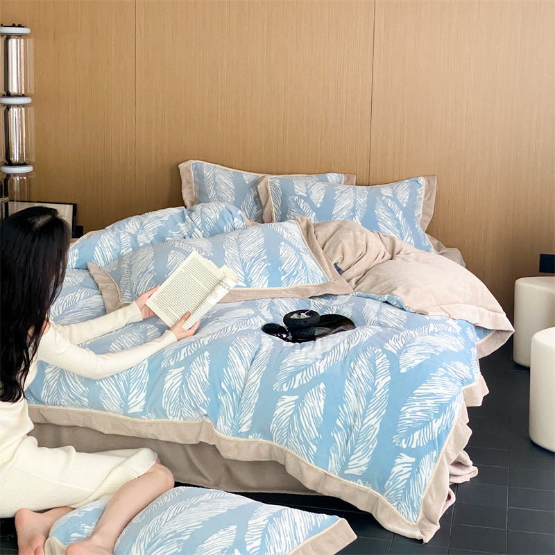 馨蕊 2023新款300克极细腻超柔煦暖绒进口导电丝四件套-挪威森林 北卡蓝