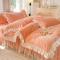商品名称:唐人居 2025新款加厚牛奶绒蕾丝花边四件套-花颜 花颜-橘粉