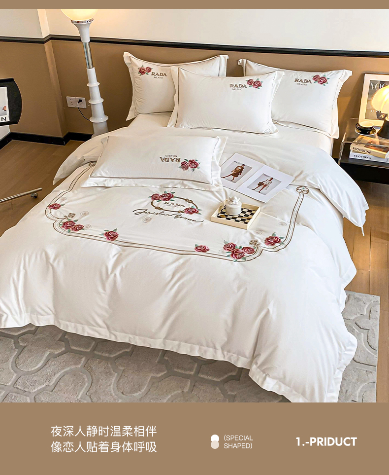 (总)理想家家纺 2023新款全棉磨毛刺绣四件套 玫瑰庄园