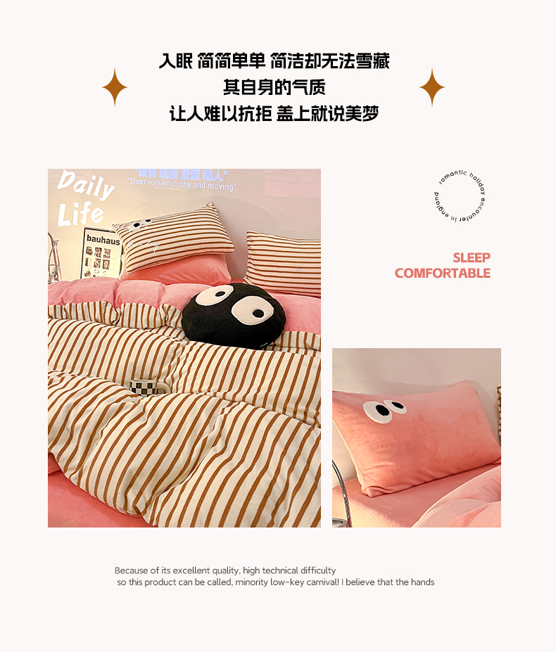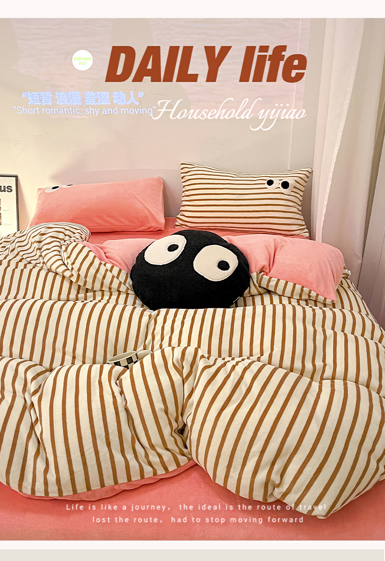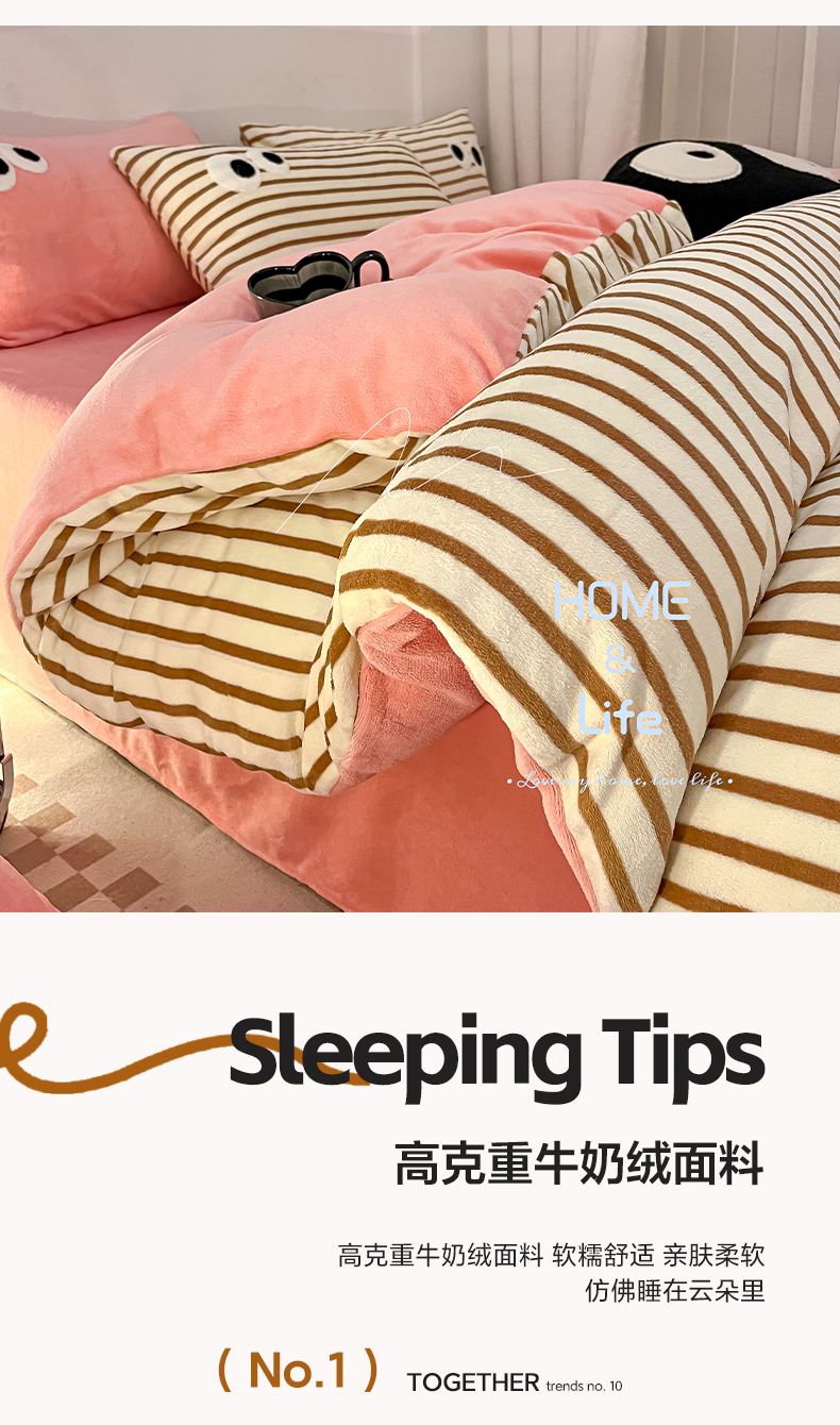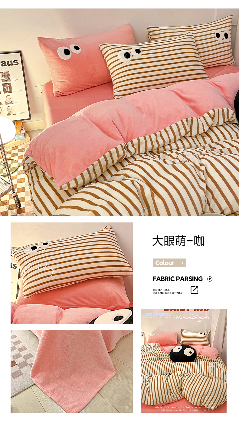 商品名称:如一 2023新款大眼萌条纹牛奶绒四件套 大眼萌-咖