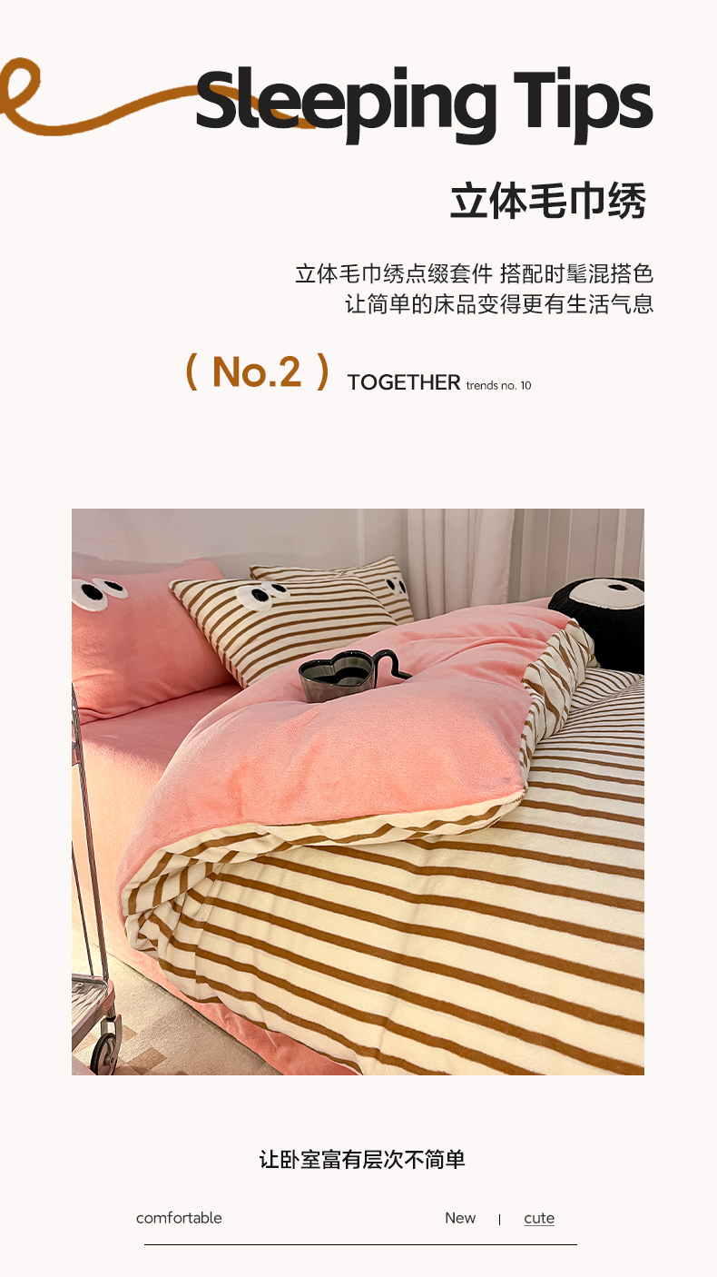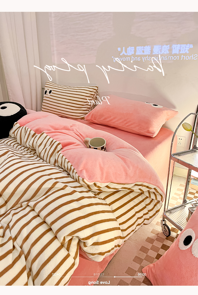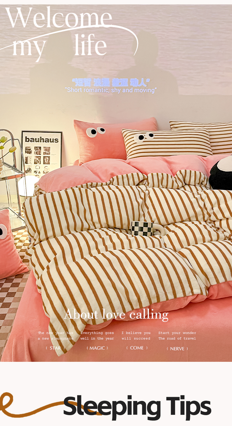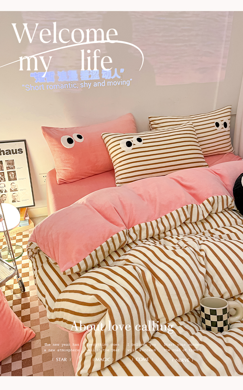 商品名称:如一 2023新款大眼萌条纹牛奶绒四件套 大眼萌-咖