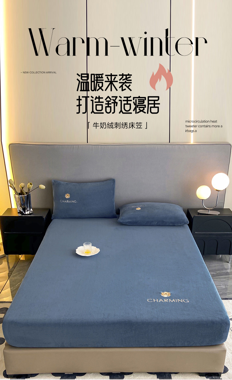 • 91家纺网 家纺一手货源 找家纺 古吉梦 2023新款牛奶绒刺绣床笠-琳达 琳达-宝石蓝