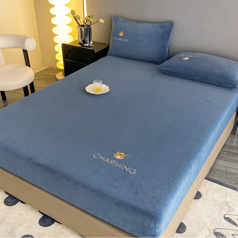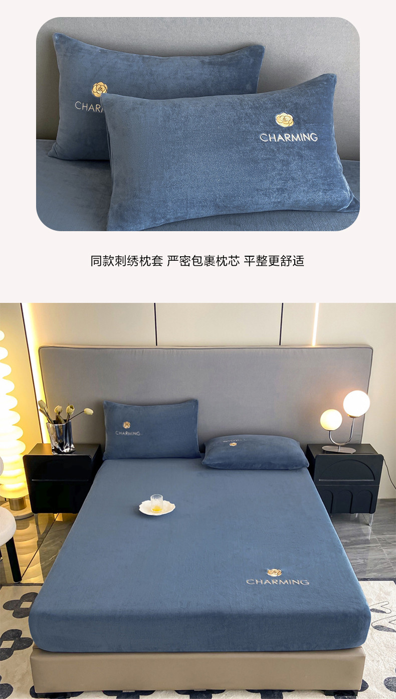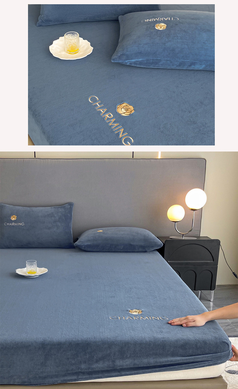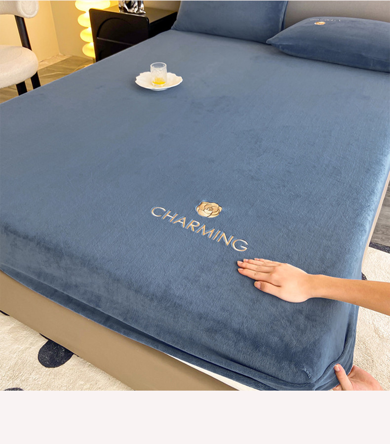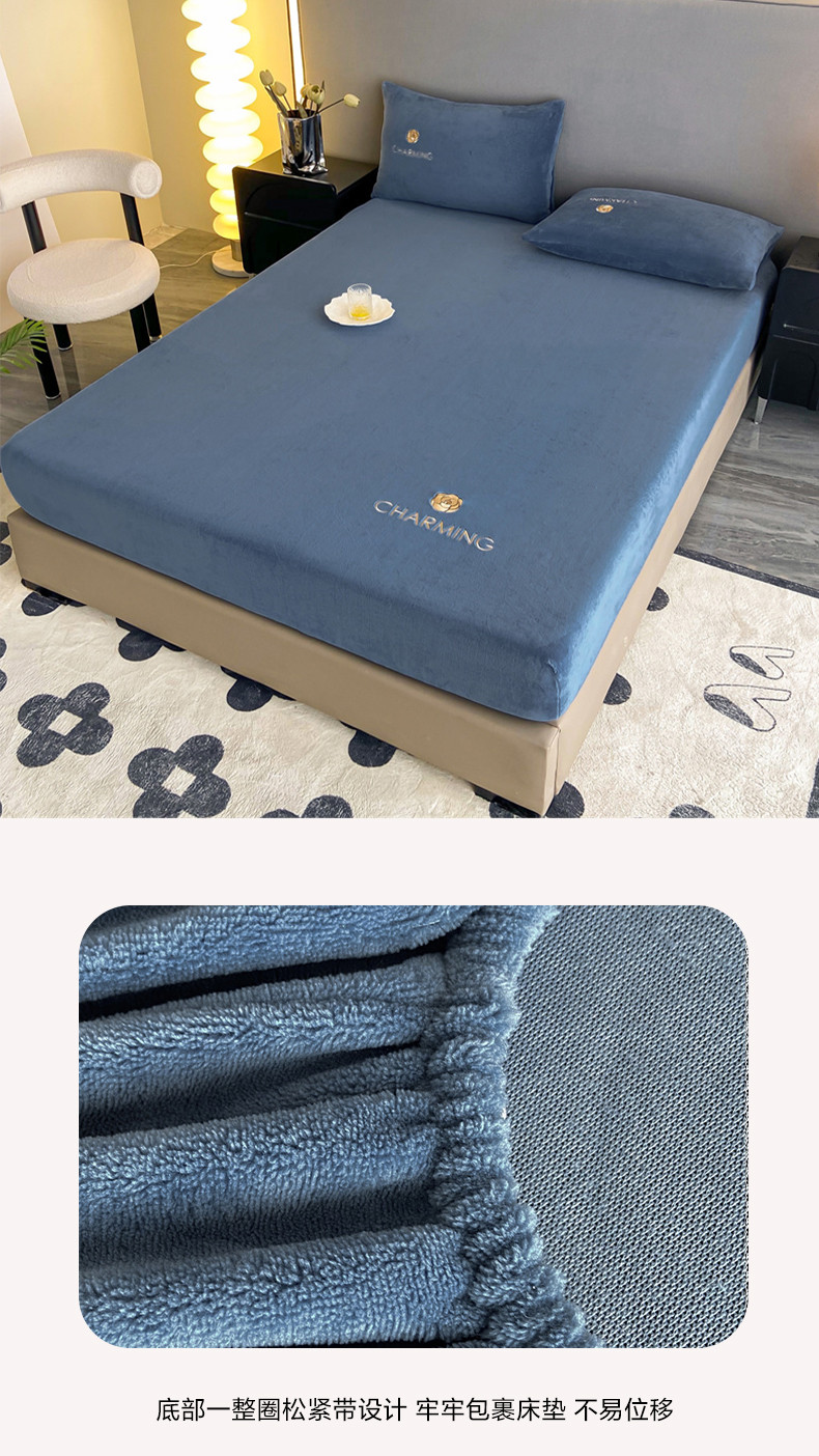 古吉梦 2023新款牛奶绒刺绣床笠-琳达 琳达-宝石蓝