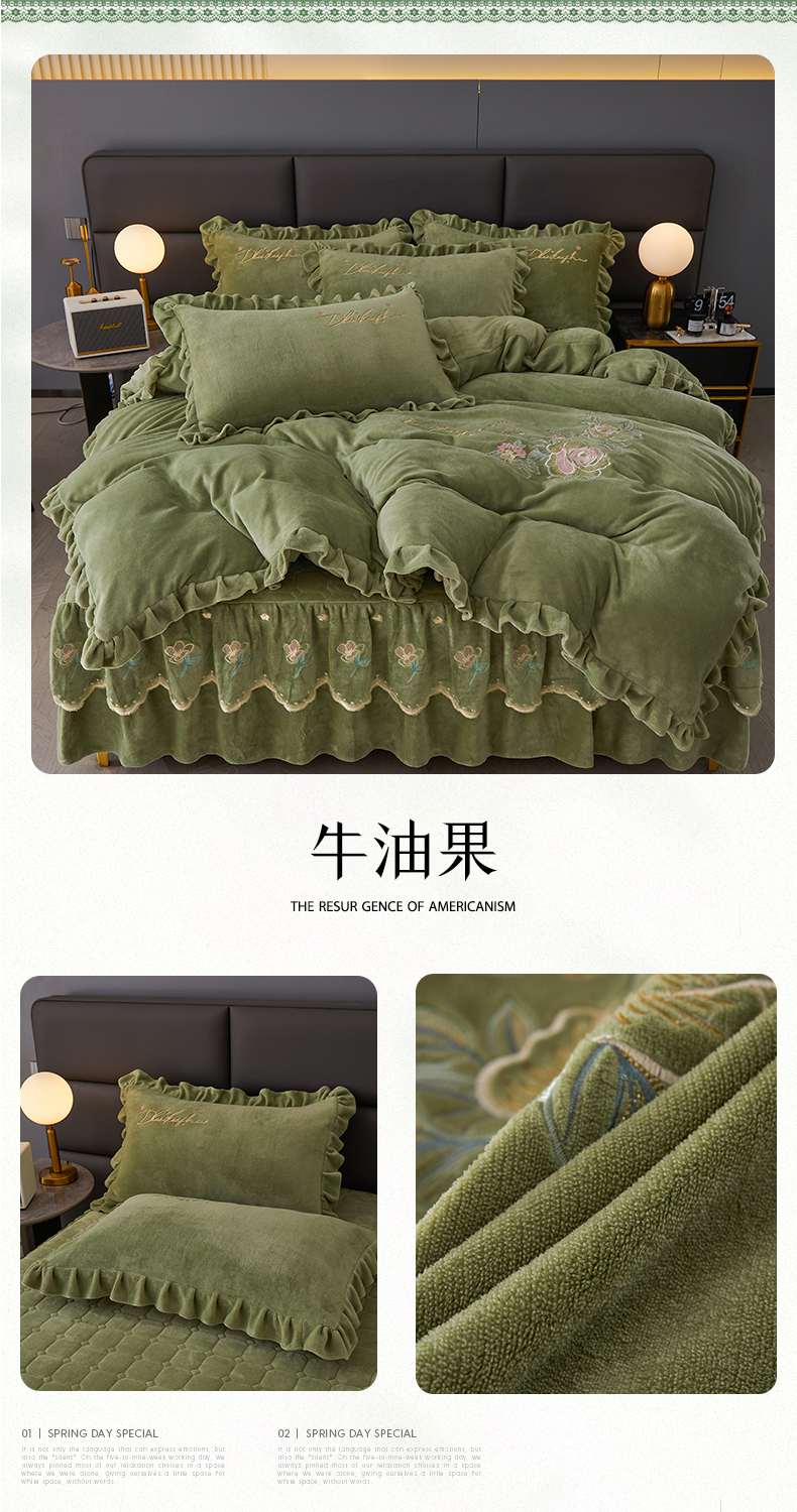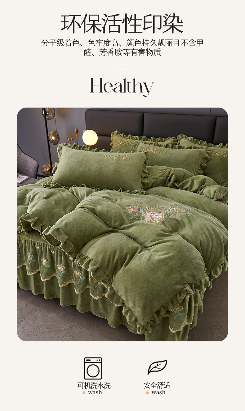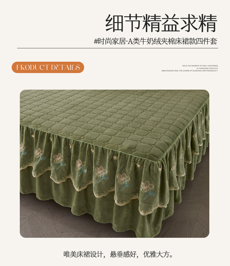 当前位置: 91家纺网 > 商品网购 > 床品套件 > 四件套 > 牛奶绒四件套 > 恒爱家纺 2023新款牡丹花开床裙款牛奶绒四件套 牛油果