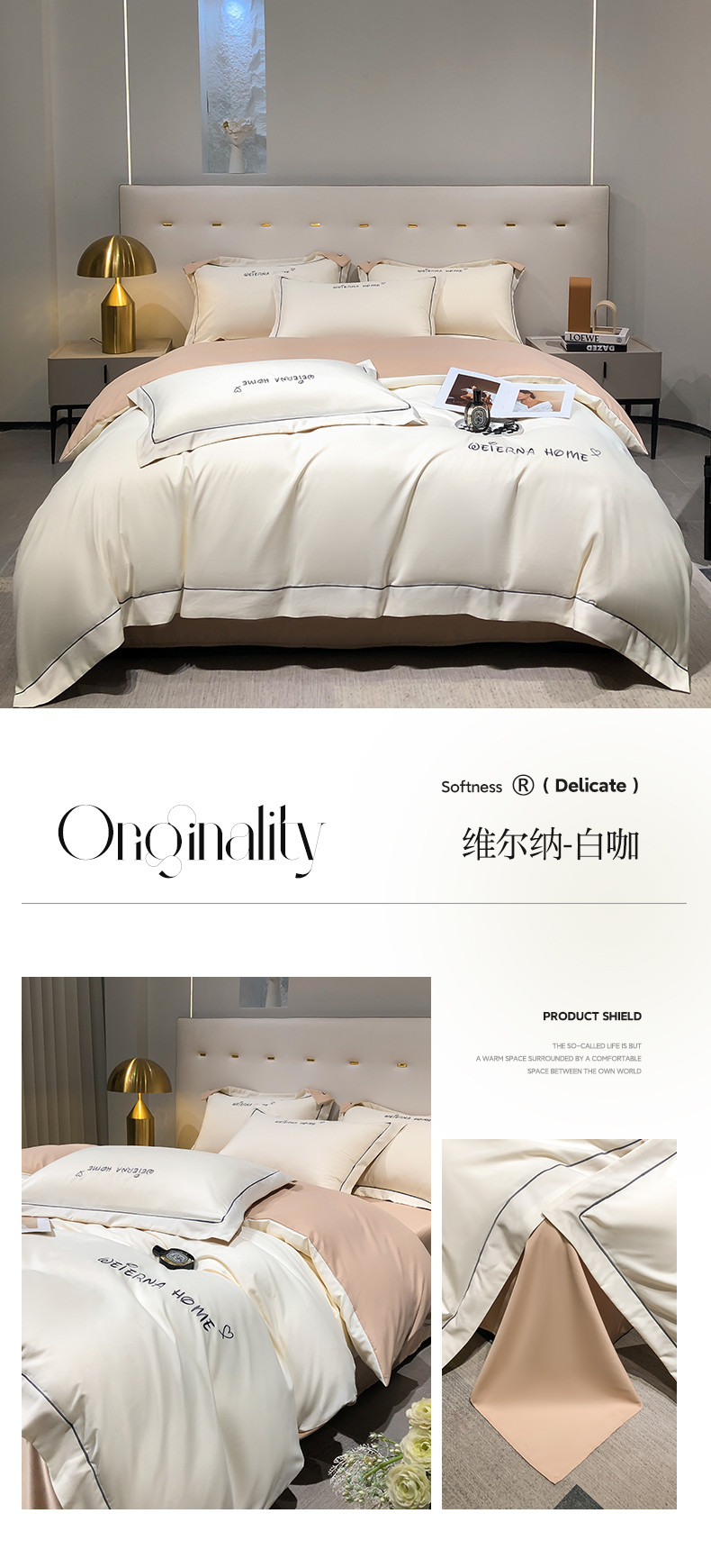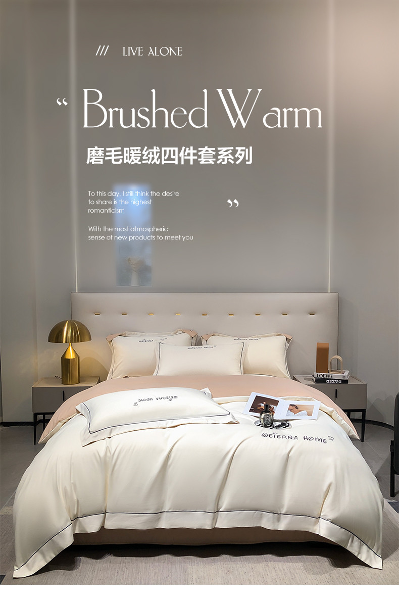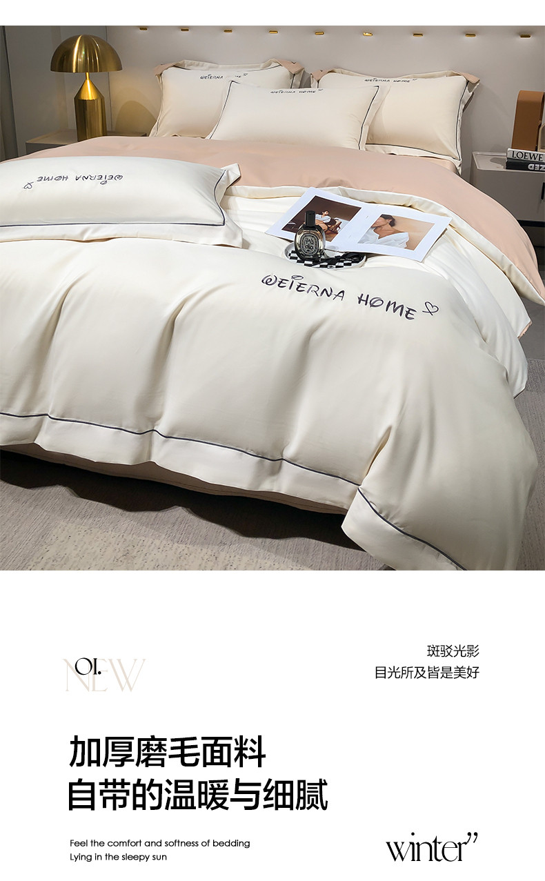 商品名称:利欧 2025新款磨毛暖绒刺绣四件套-维尔纳 维尔纳-白咖
