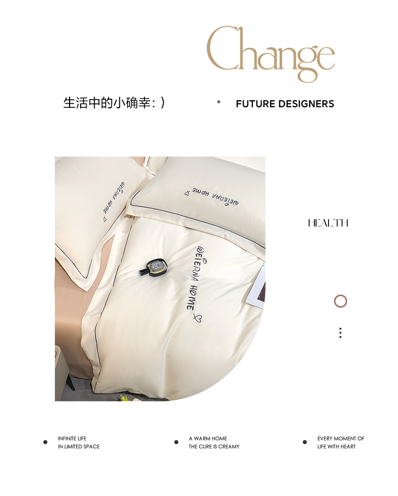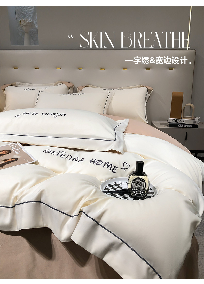 (总)利欧 2025新款W拼边系列水洗真丝四件套,W-抹茶绿,W-奶白