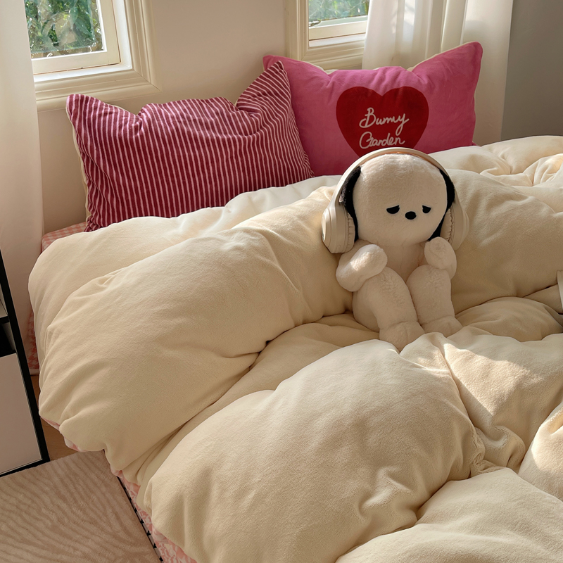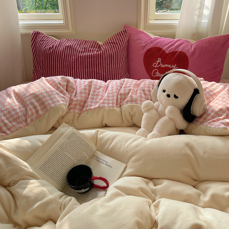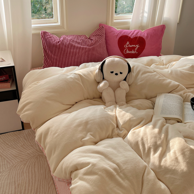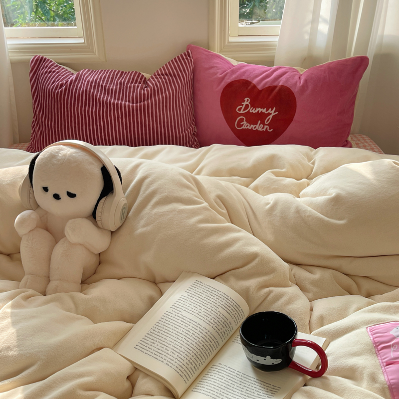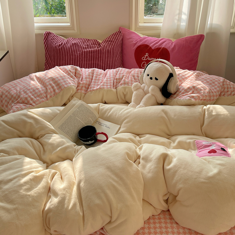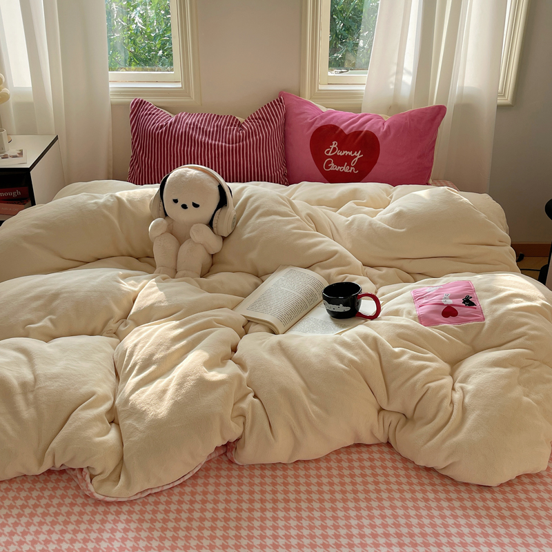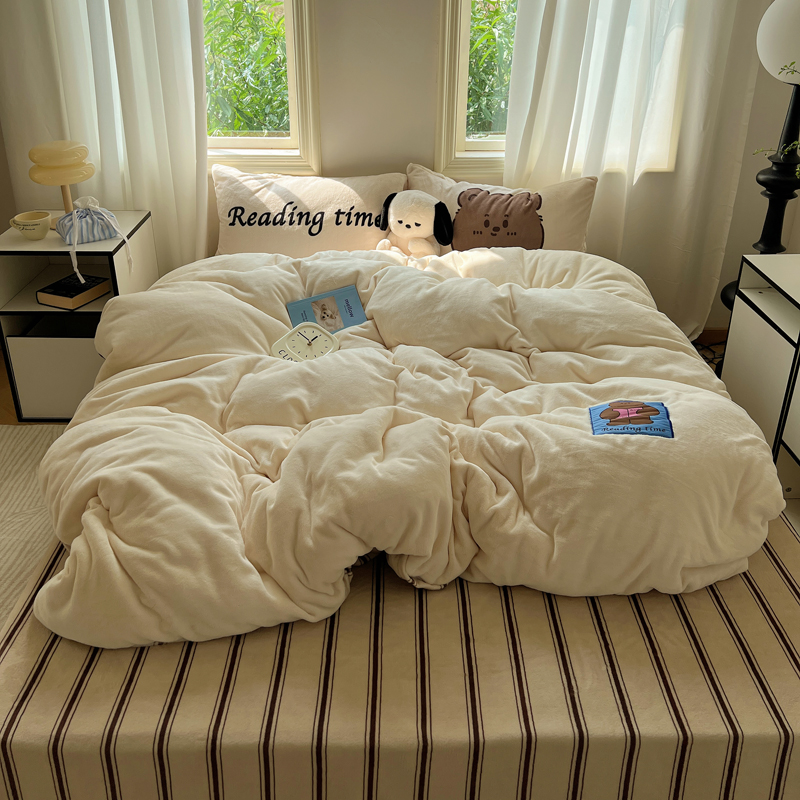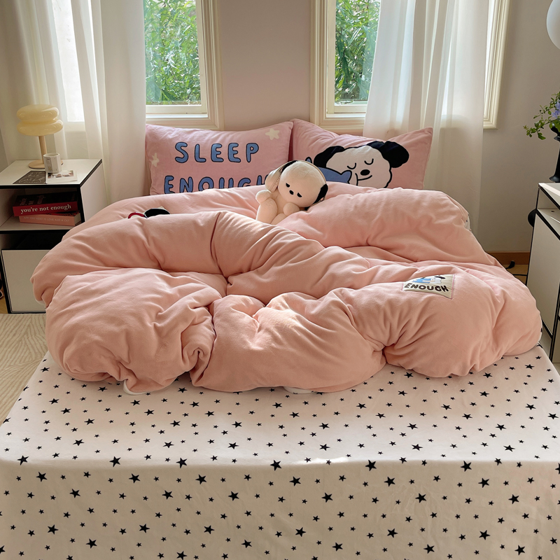 (总)桃喜 2024新款牛奶绒卡通数码印花绣标四件套