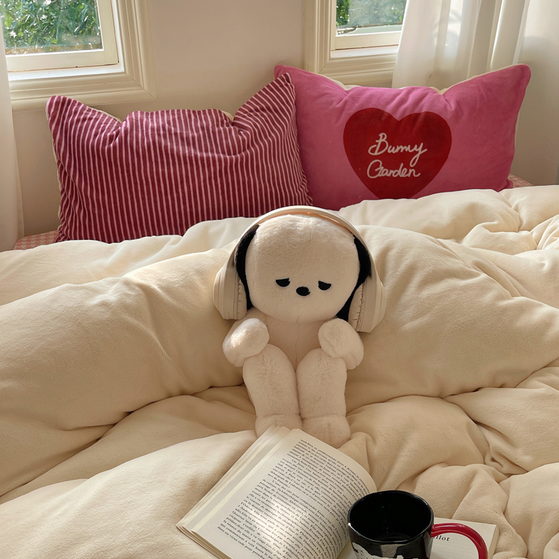(总)桃喜 2025新款牛奶绒线条系列四件套 【会员-5】,黑白小狗,咖色线条狗勾