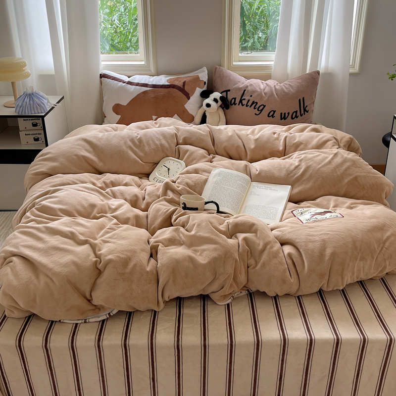 (总)桃喜 2025新款条纹牛奶绒系列四件套(会员-5),冰岛蓝,复古黑白,暮光森林,青缇葡萄