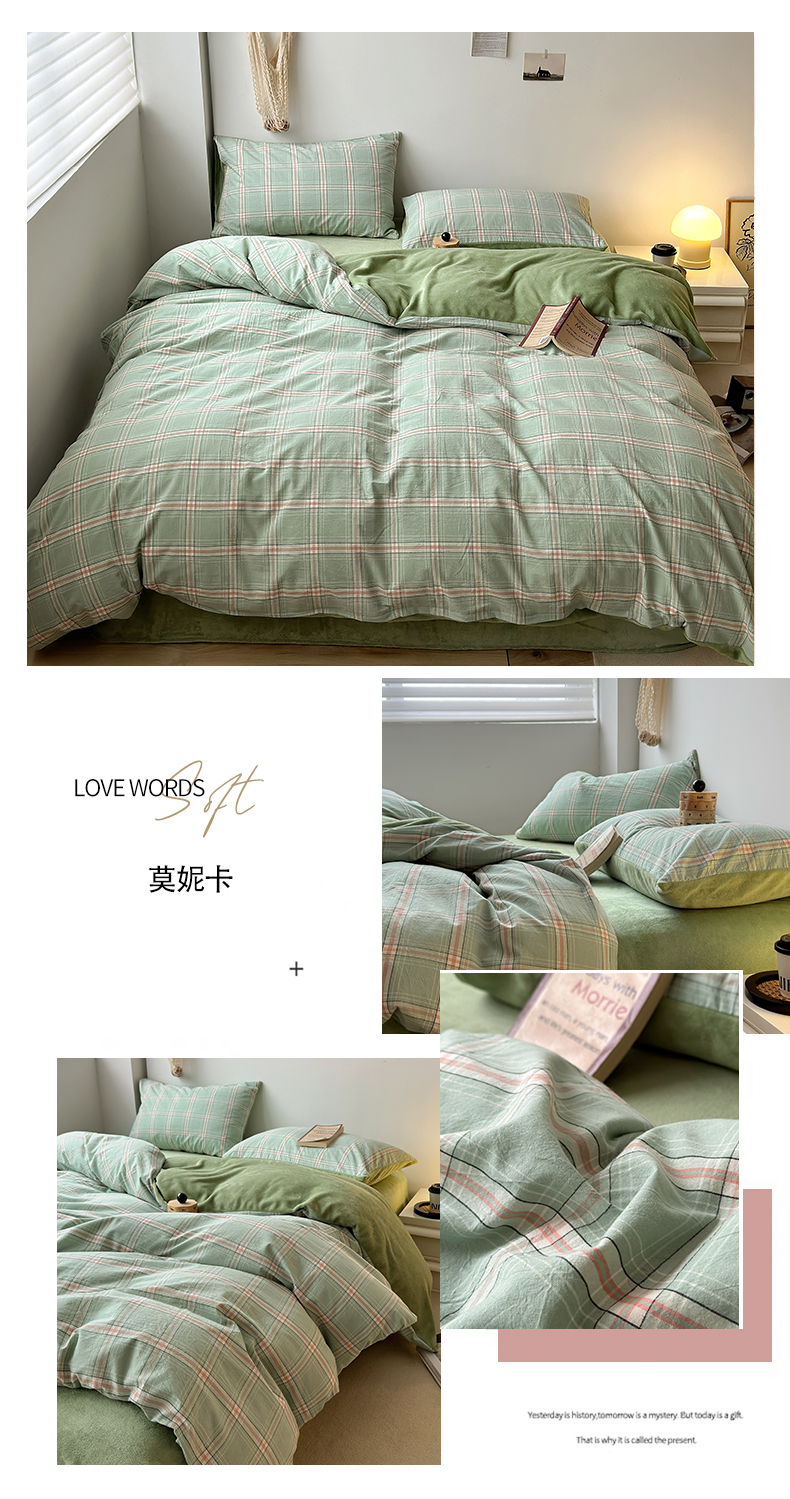 商品名称:水洗的故事 2023新款色织水洗棉牛奶绒双用四件套 莫妮卡