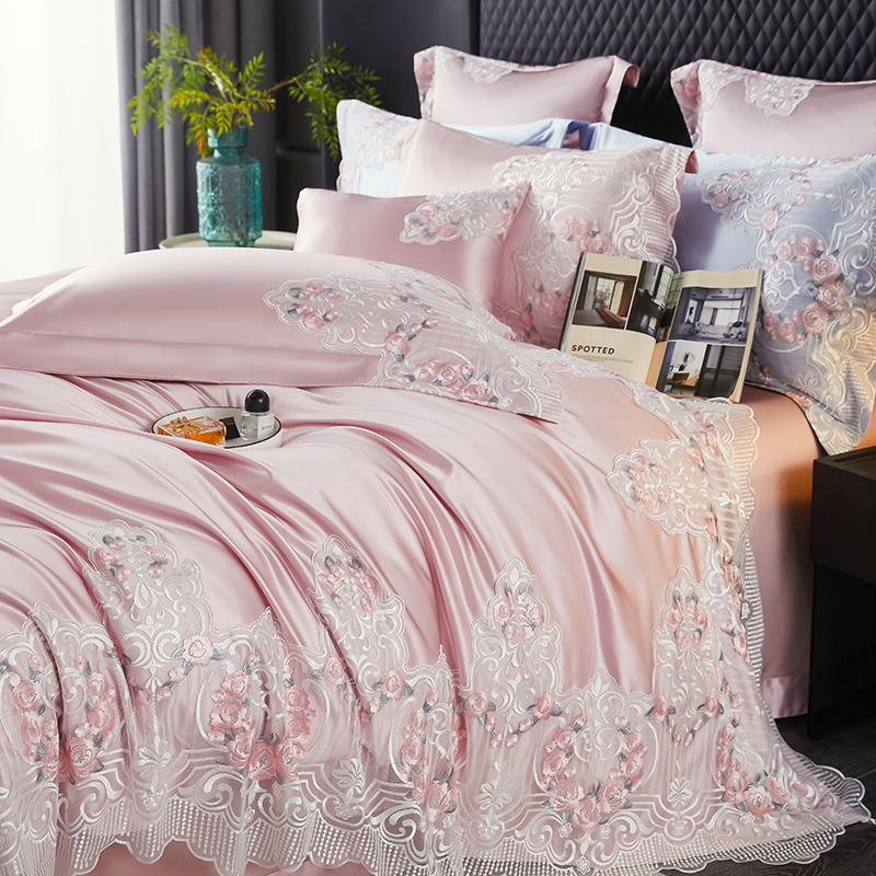 当前位置: 91家纺网 > 商品网购 > 床品套件 > 四件套 > 长绒棉四件套 > 缔缦 2023新款A版真丝棉B版60s长绒棉高端蕾丝四件套系列-蔷薇花园 粉