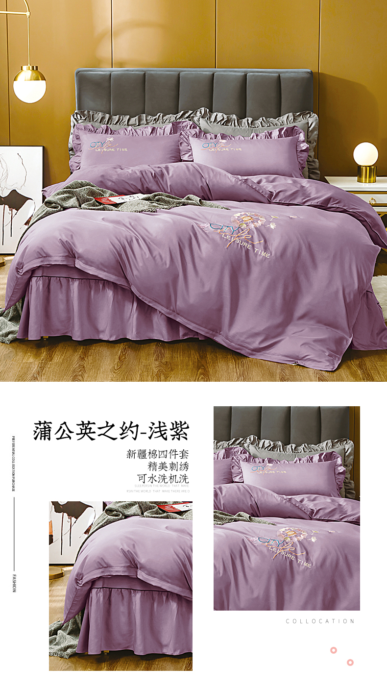 商品名称:伊而梦蚊帐 2023新款仿真丝刺绣四件套--蒲公英之约 蒲公英之约-浅紫