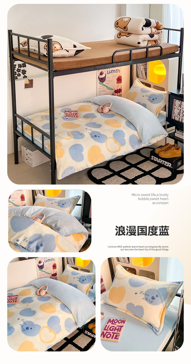 商品名称:川悦生活 2023新款高克重宿舍牛奶绒三件套四件套 浪漫国度蓝