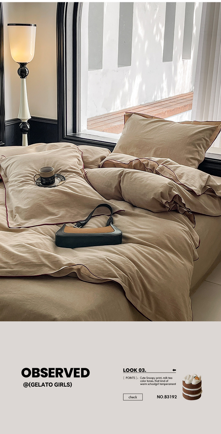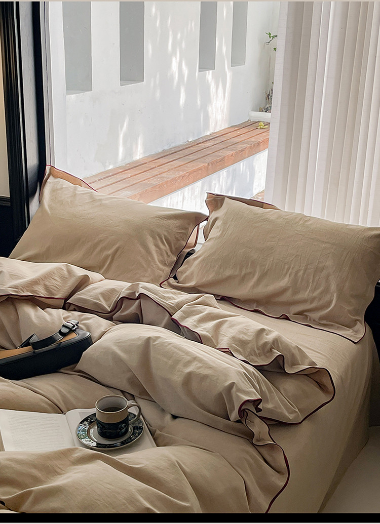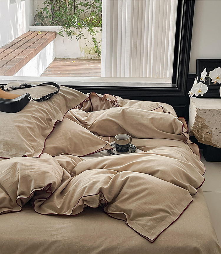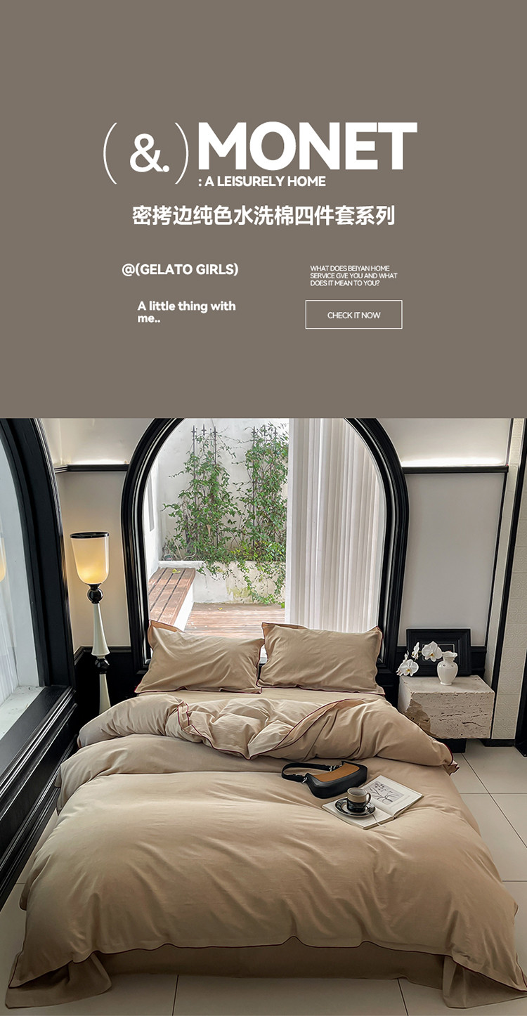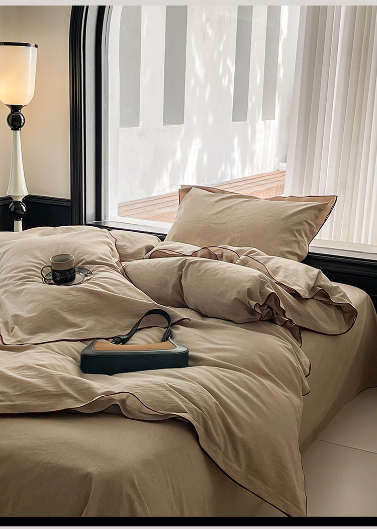 当前位置: 91家纺网 > 商品网购 > 床品套件 > 四件套 > 全棉普通四件套 > 华超针织 2024新款全棉密拷边纯色水洗棉四件套 密拷边纯色卡其