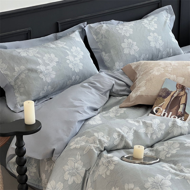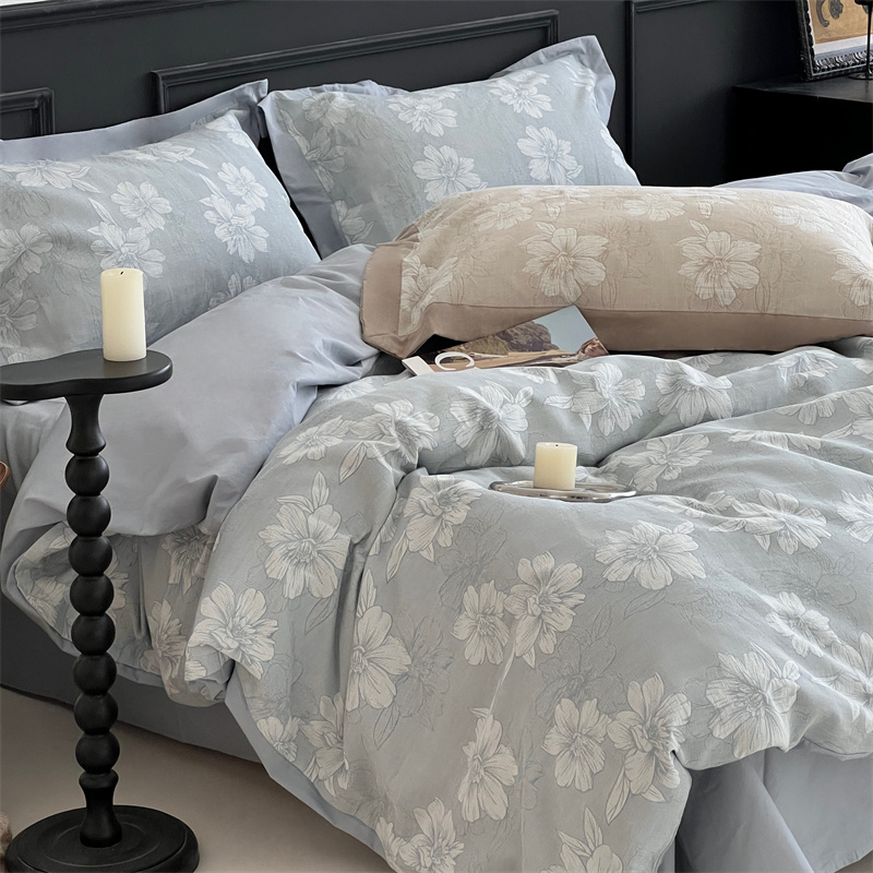 (总)梦享生活家居 2025新款高级轻奢色织双层纱大提花棉麻四件套,梦芙-浅灰,梦芙-深灰
