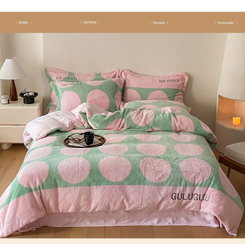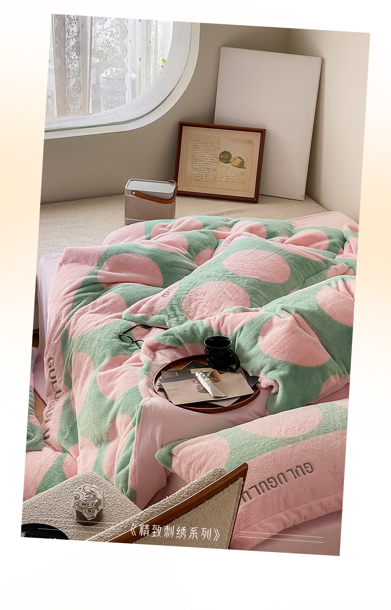 商品名称:名品优仓 2024新款兔毛绒牛奶绒绣花四件套 兔绒波尔-卡点圆