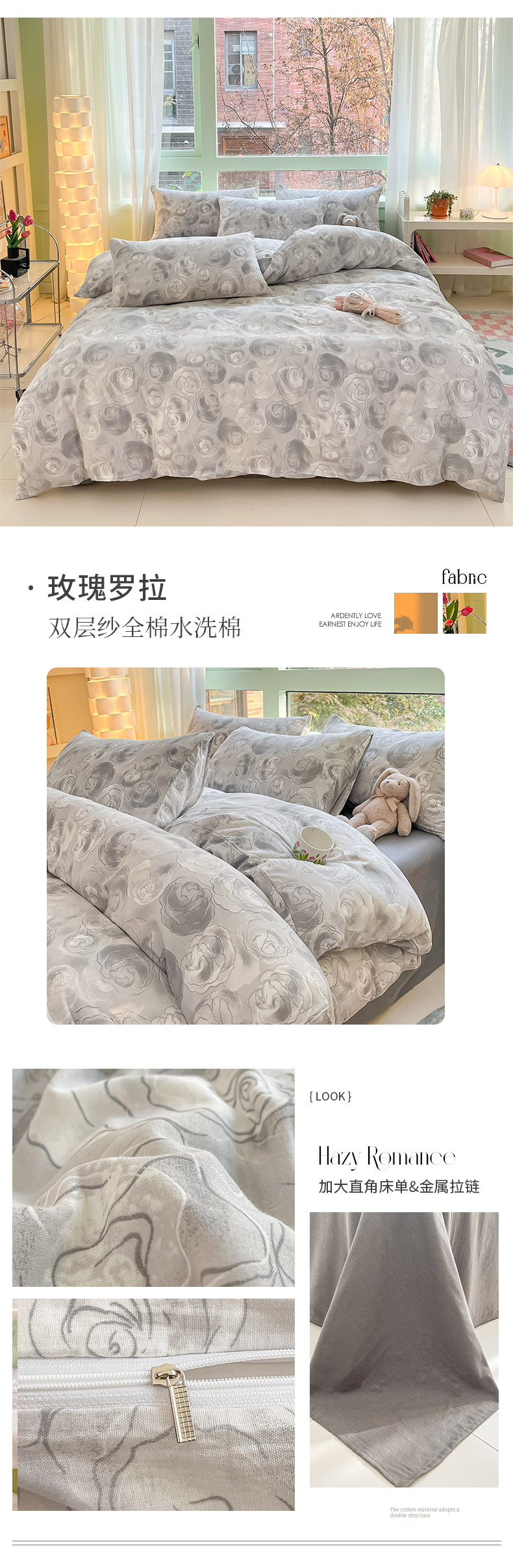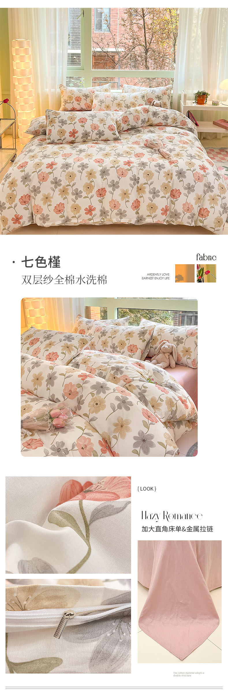 (总)ab家纺 2024新款全棉双层纱印花四件套