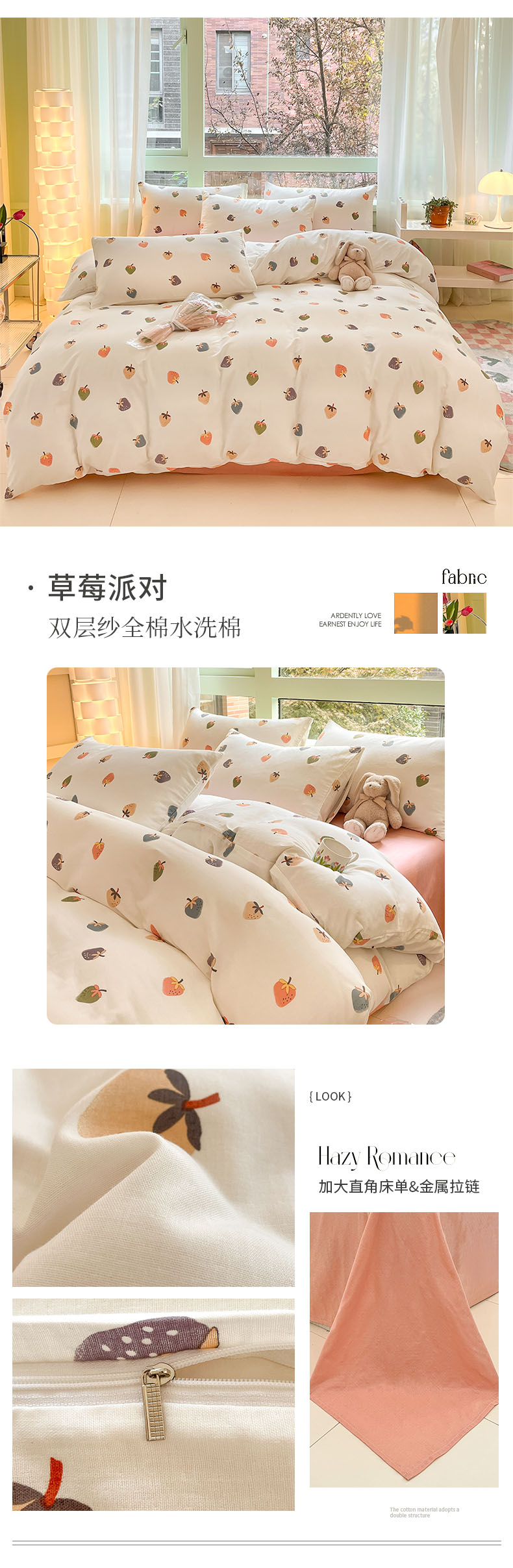 商品名称:(总)ab家纺 2024新款全棉双层纱印花四件套