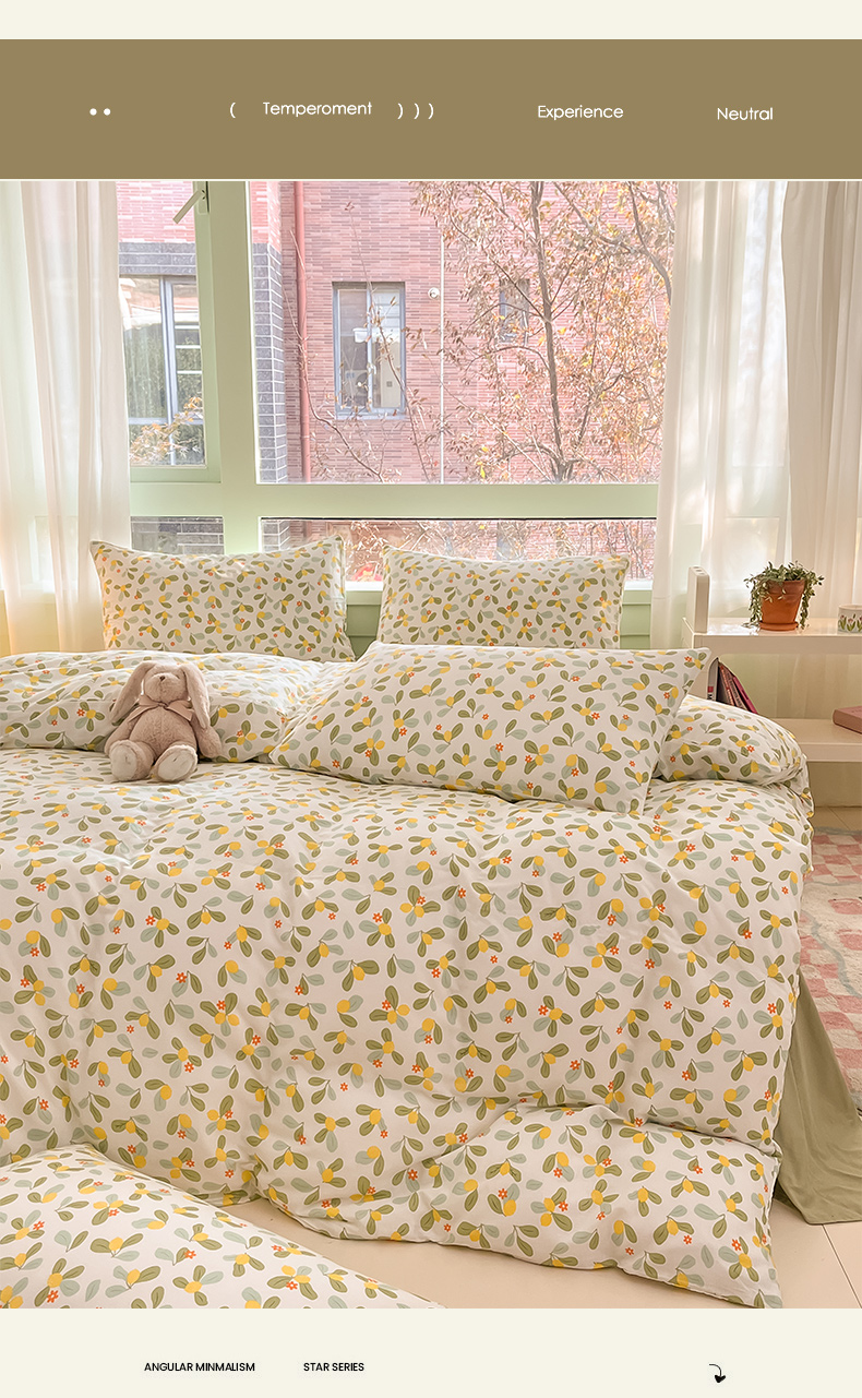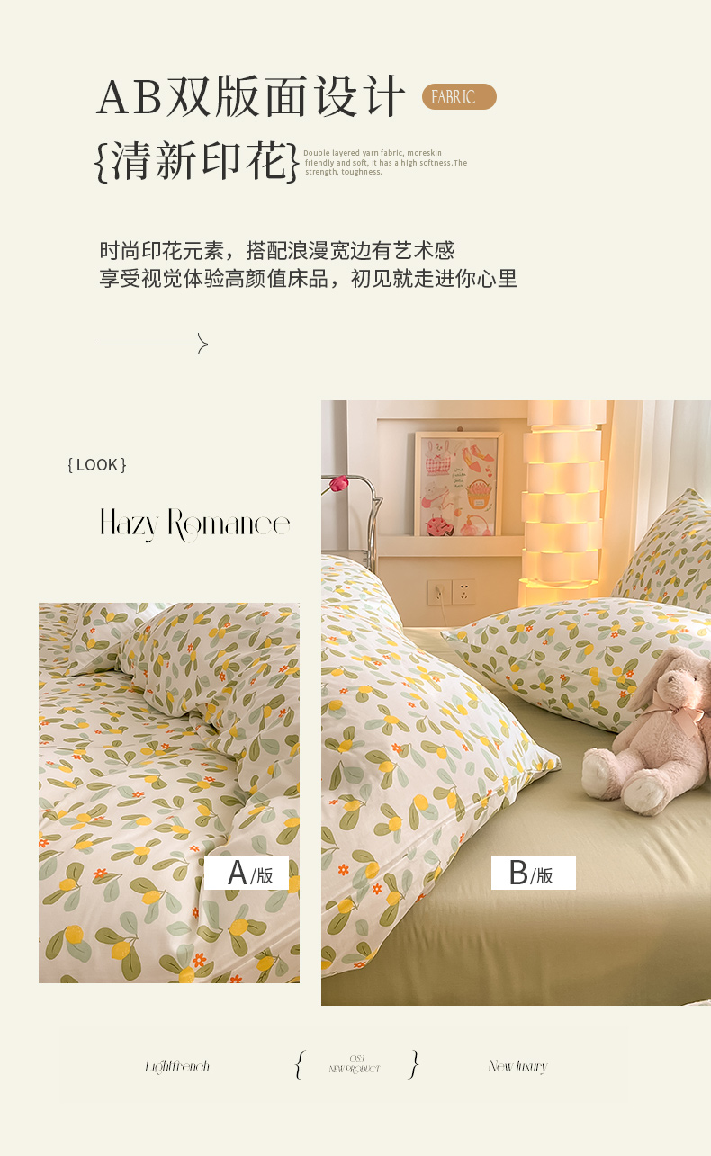 ab家纺 2024新款全棉双层纱印花四件套 一抹柠萌