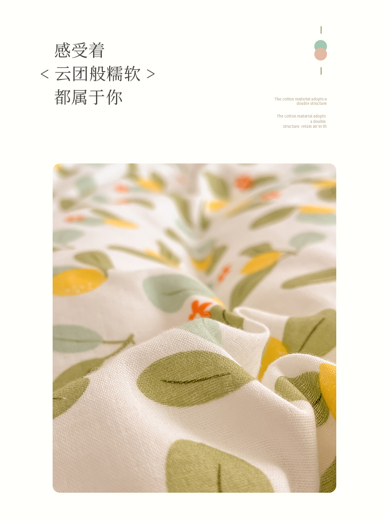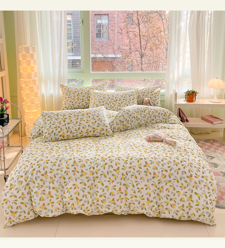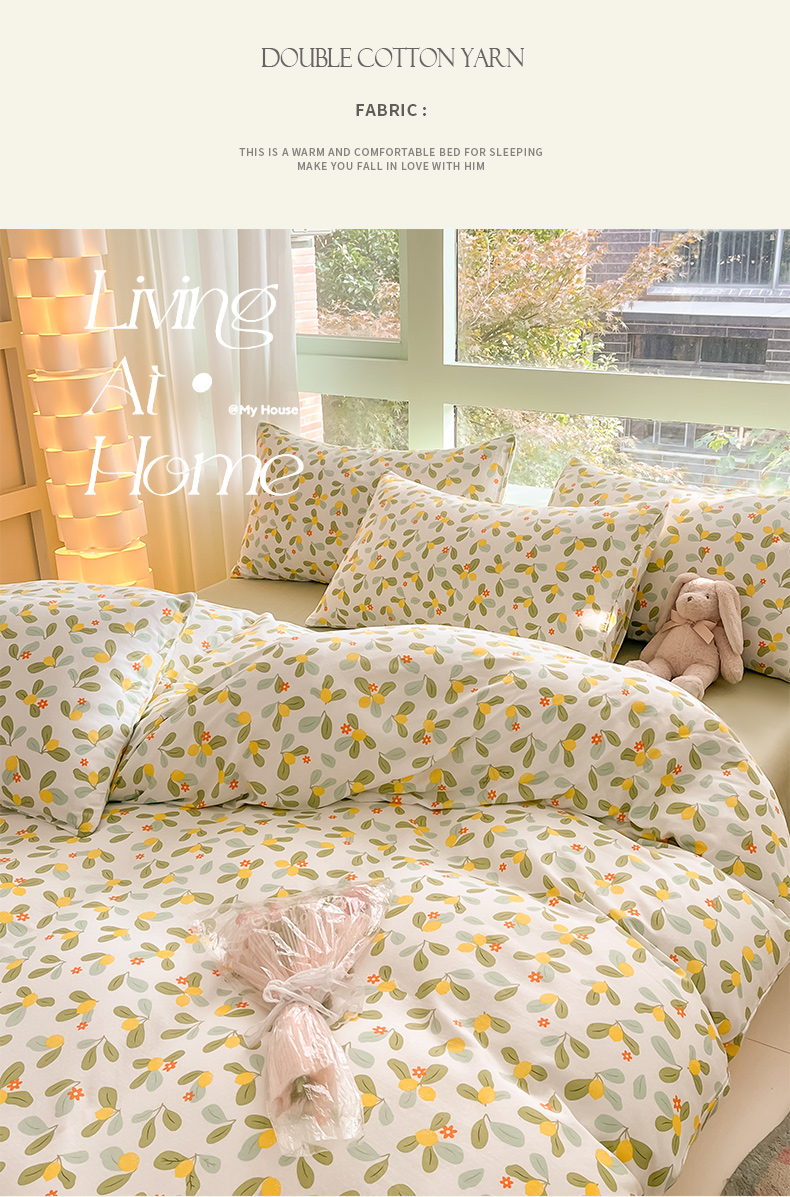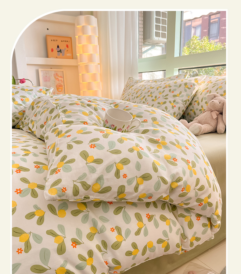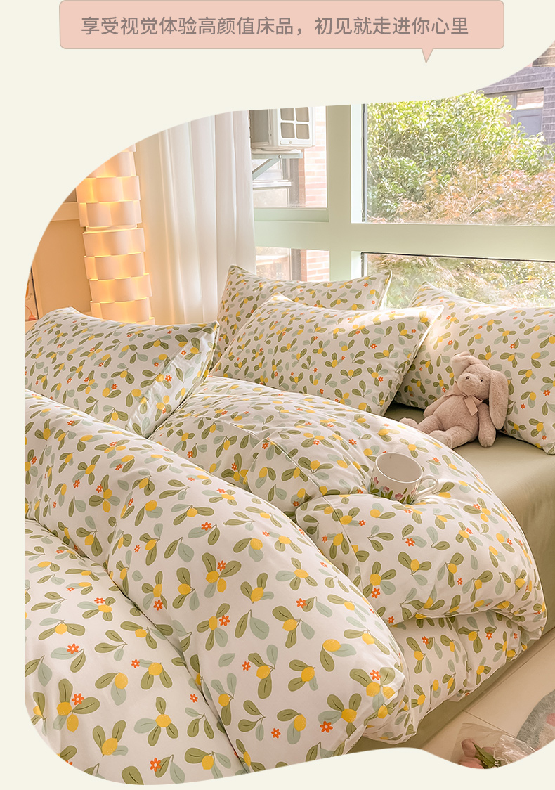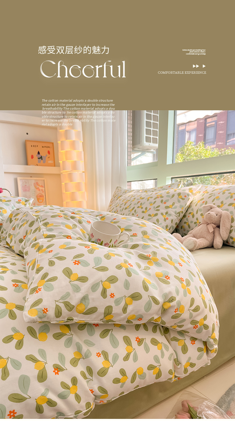 商品名称:ab家纺 2024新款全棉双层纱印花四件套 一抹柠萌