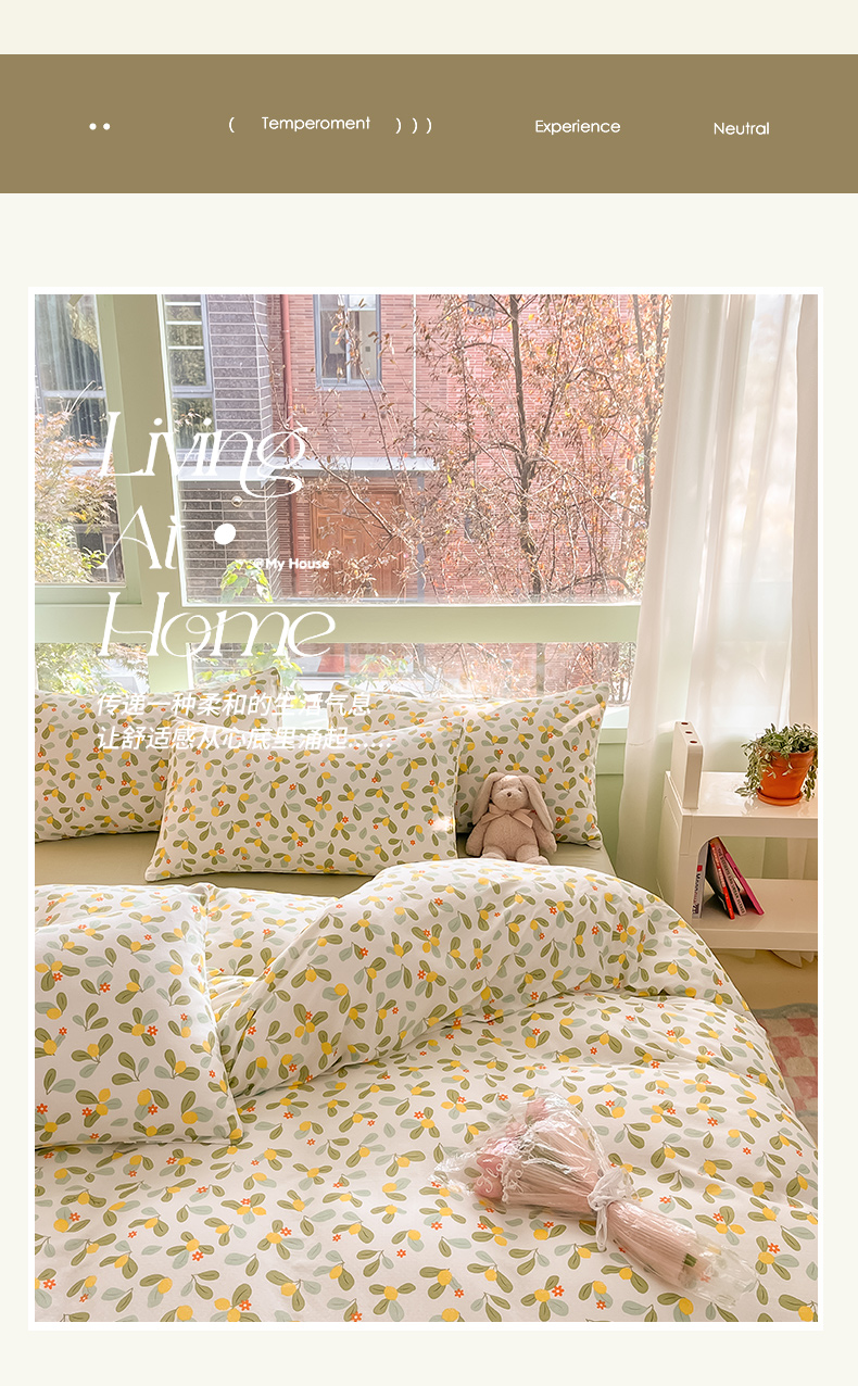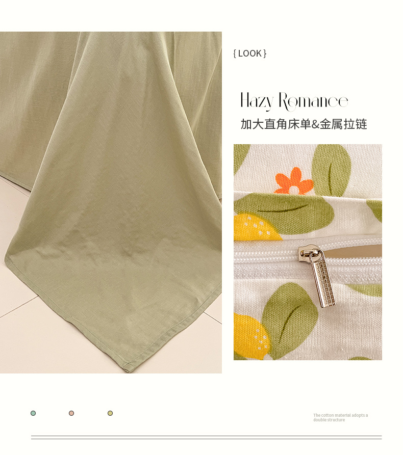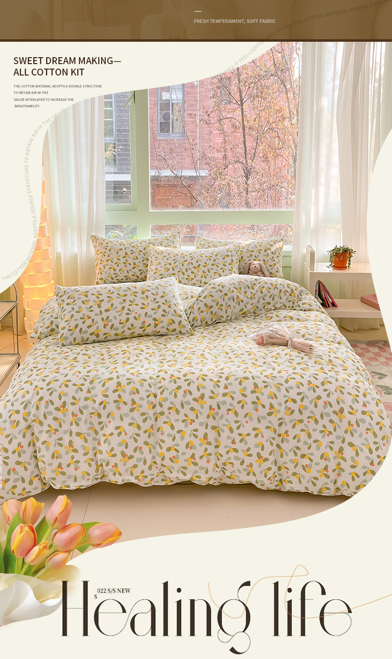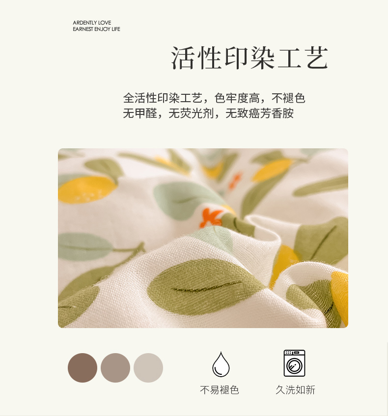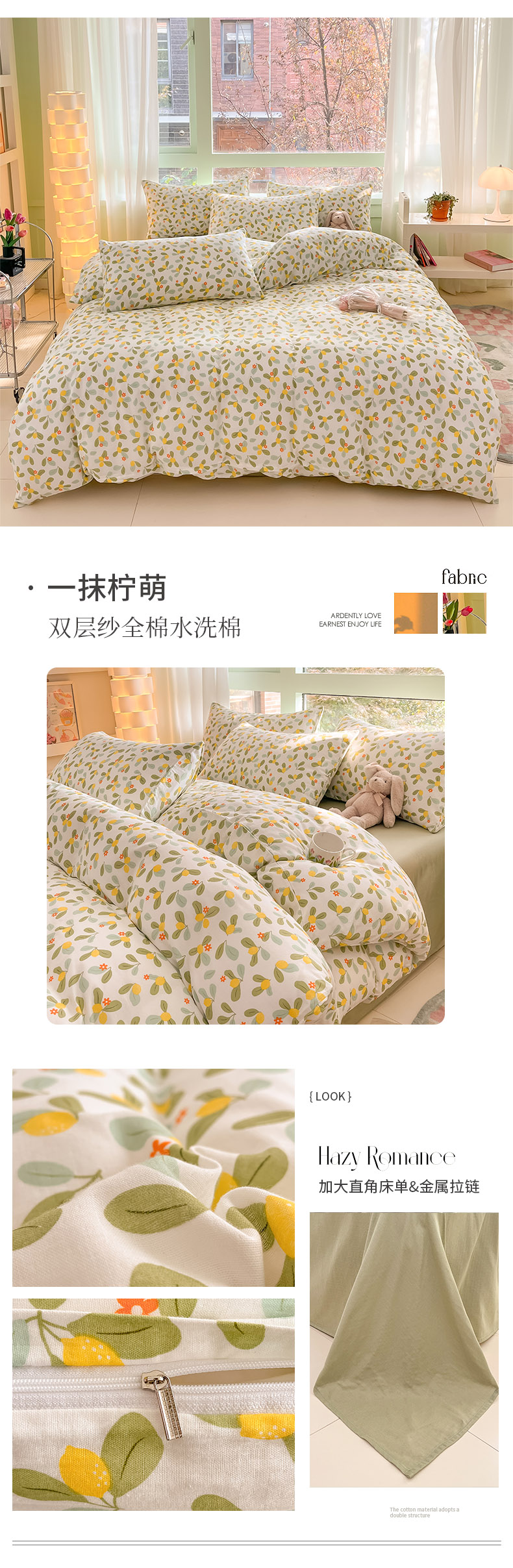 商品名称:ab家纺 2024新款全棉双层纱印花四件套 一抹柠萌