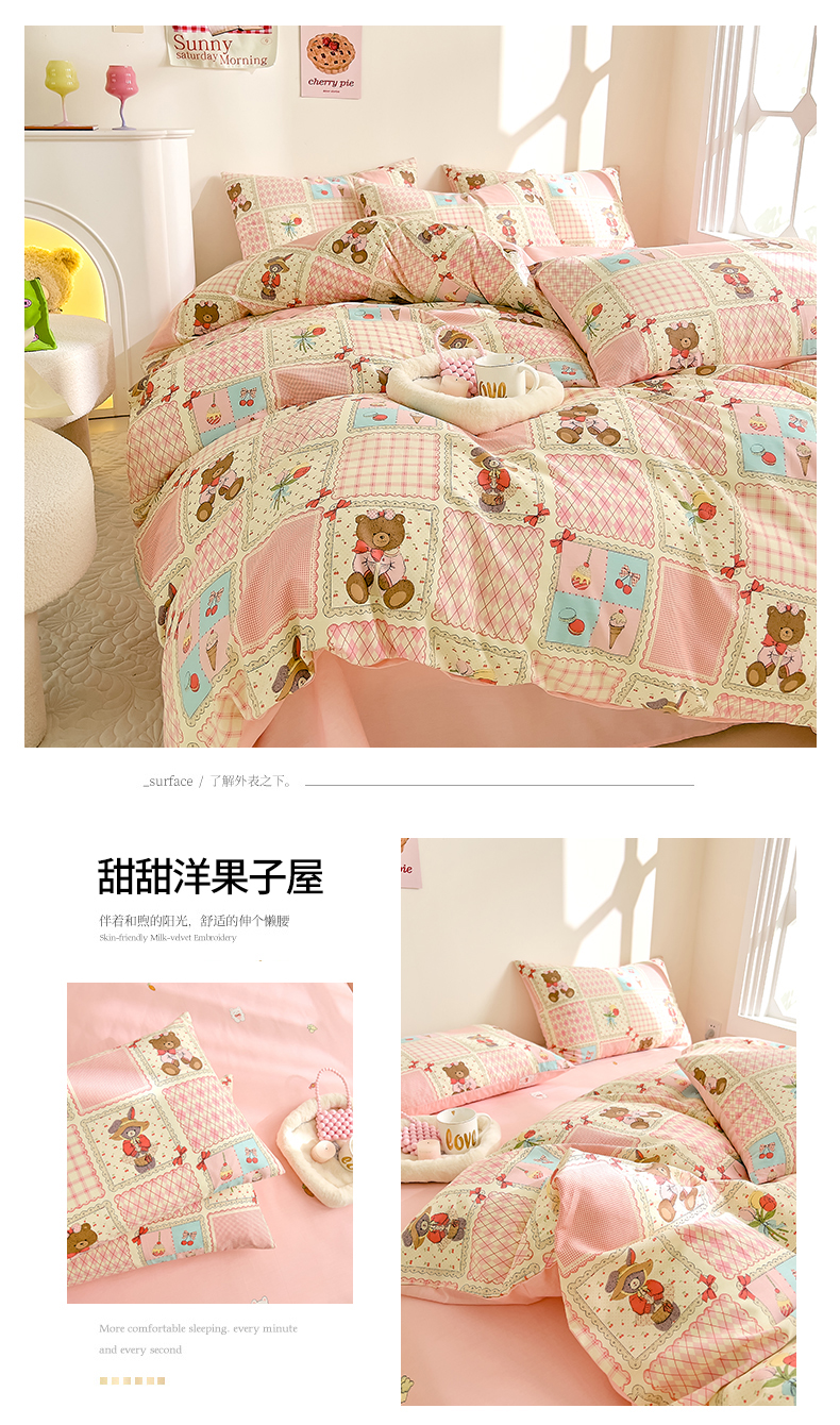 (总)DoDo 兜兜 2025新款卡通全棉纯棉小清新三四件套系列 (可定做尺寸),星星仔,爱豆熊,豹纹小熊,多彩笑脸,粉粉猫,狗狗家族,假日小狗,萝莉兔,蘑菇小狗,围裙小熊,小狗笔记