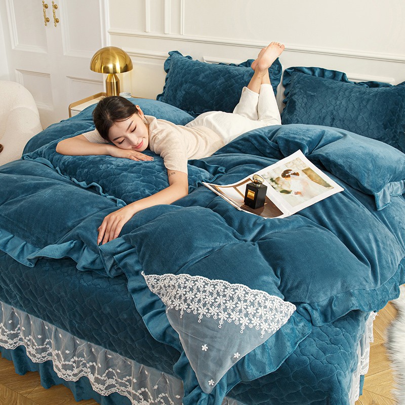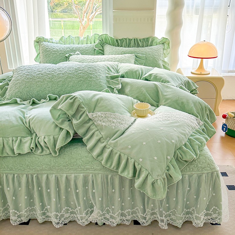 漫布云2025秋冬新款11斤230g全消光牛奶绒夹棉床盖款四件套纯色蕾丝花边刺绣床裙款床盖,蝶恋花-梦幻紫, 蝶恋花-嫩黄 ,蝶恋花-新芽绿, 蝶恋花-婴儿蓝, 蝶恋花-樱花粉