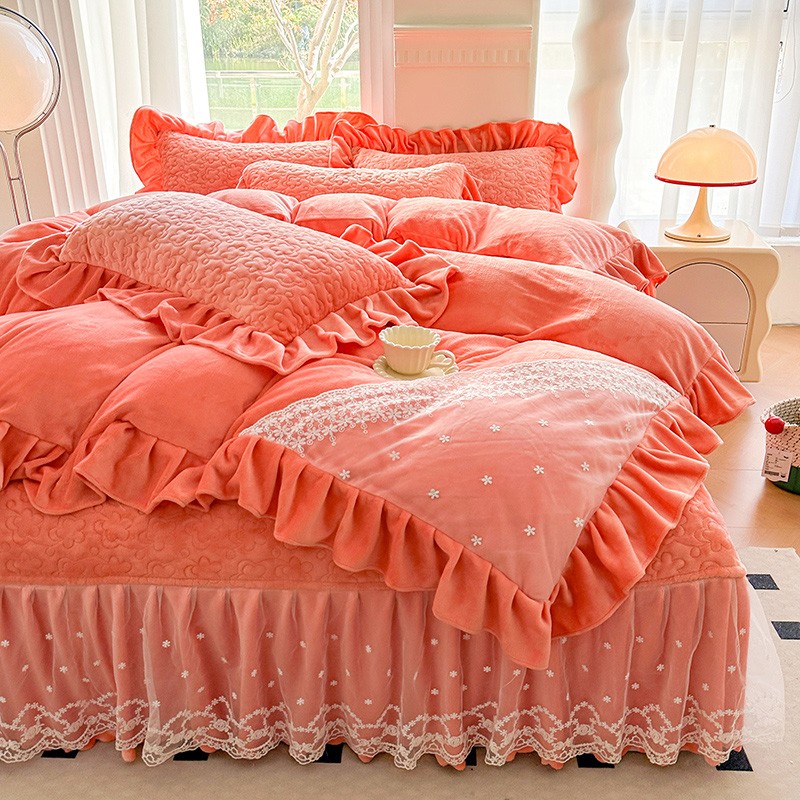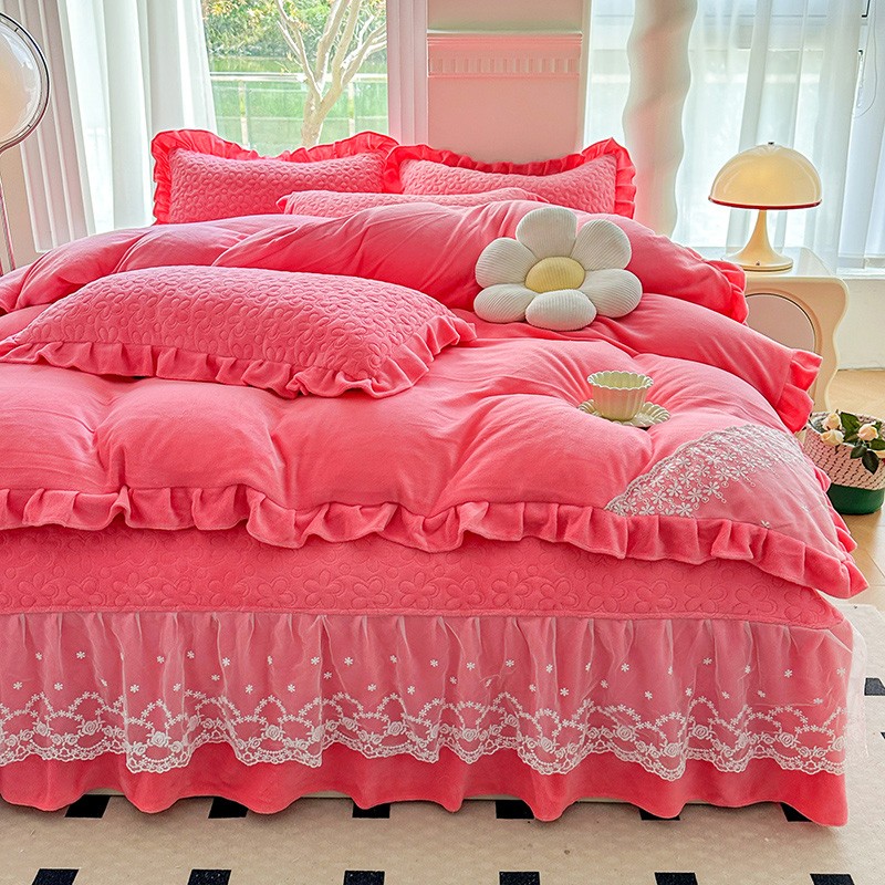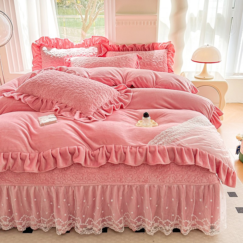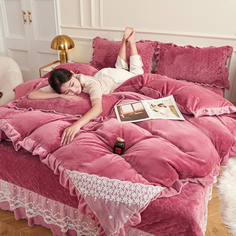 漫布云家纺2023新款浪漫花语秋冬保暖加厚牛奶绒夹棉床盖四件套