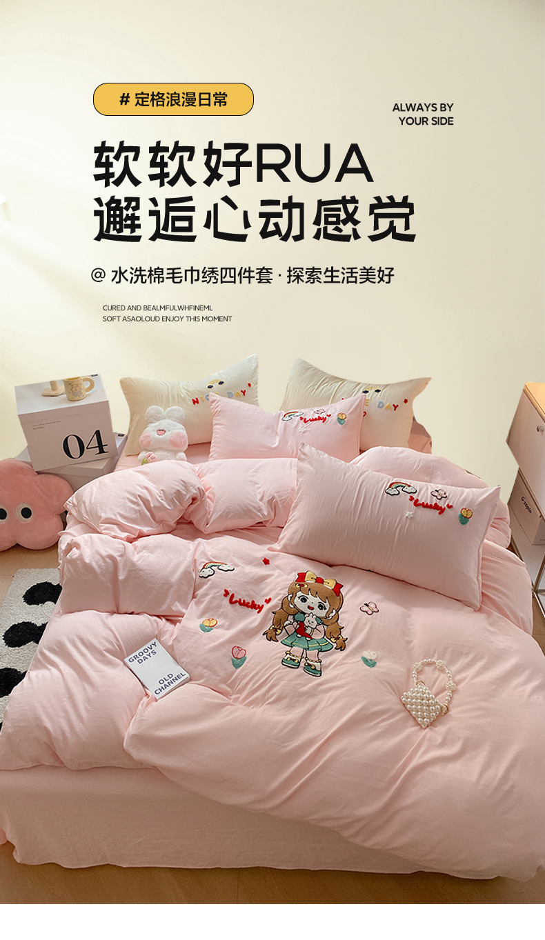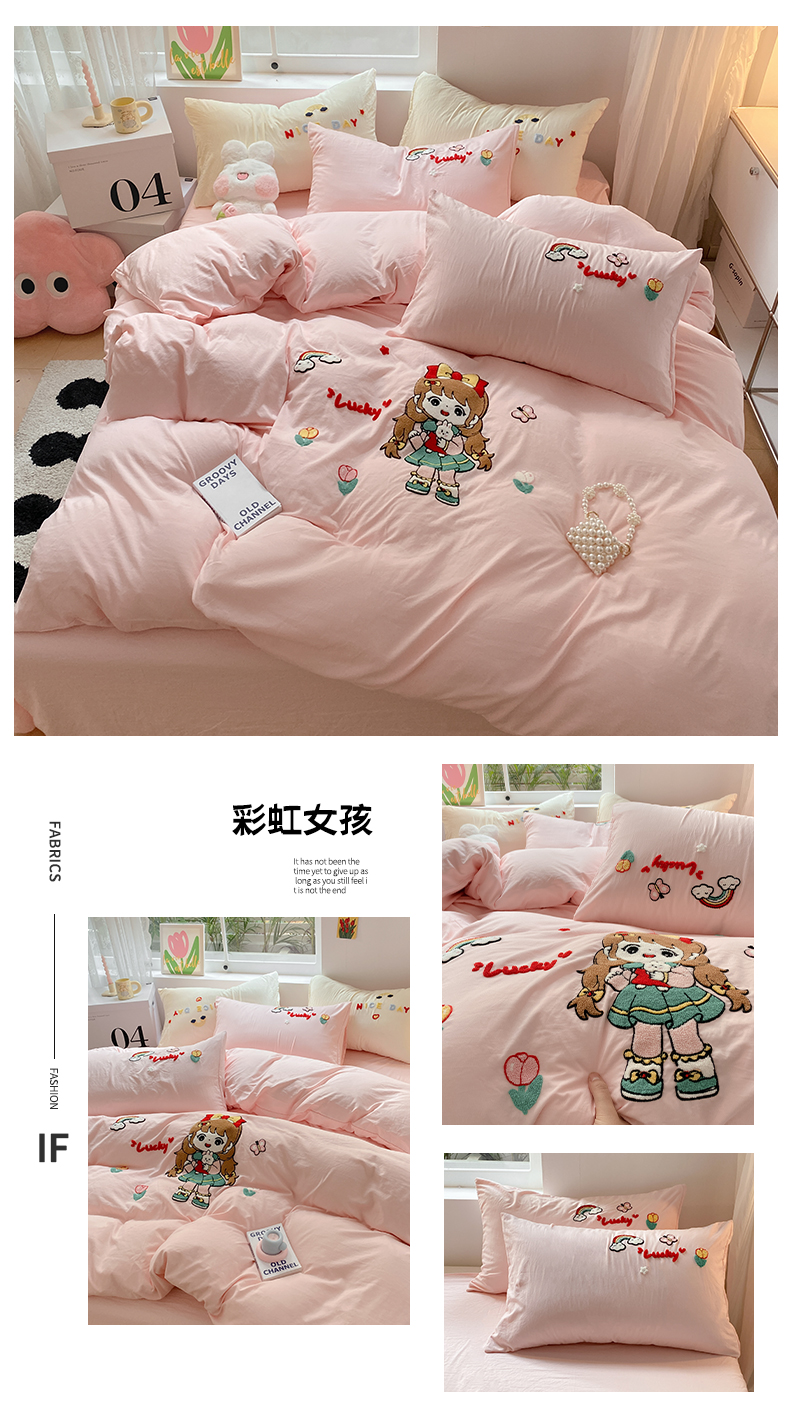 当前位置: 91家纺网 > 商品网购 > 床品套件 > 四件套 > 毛巾绣四件套 > 优承佳生活馆 2024新款ins风毛巾绣超柔亲肤云朵m四件套 彩虹女孩