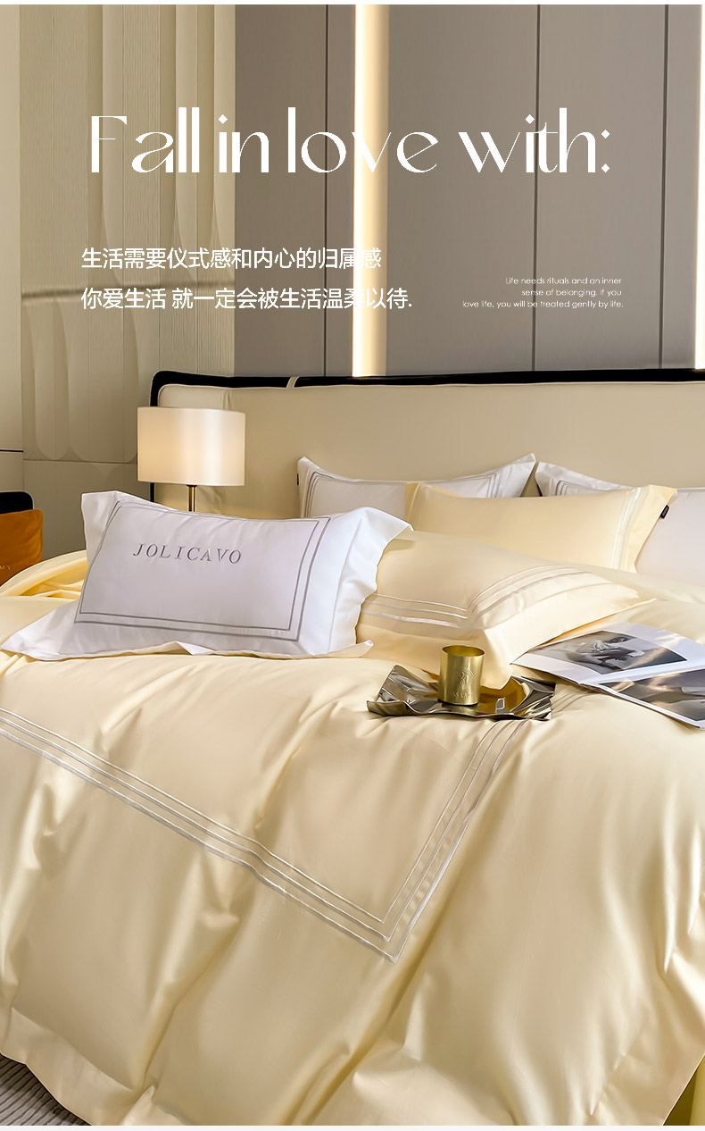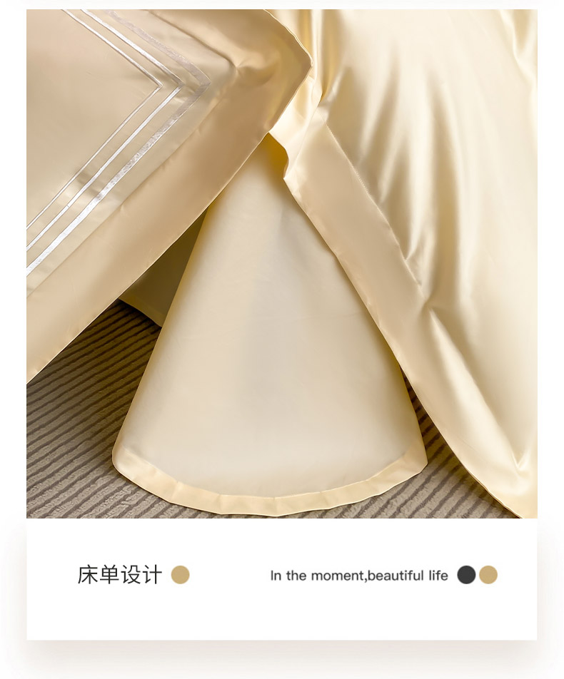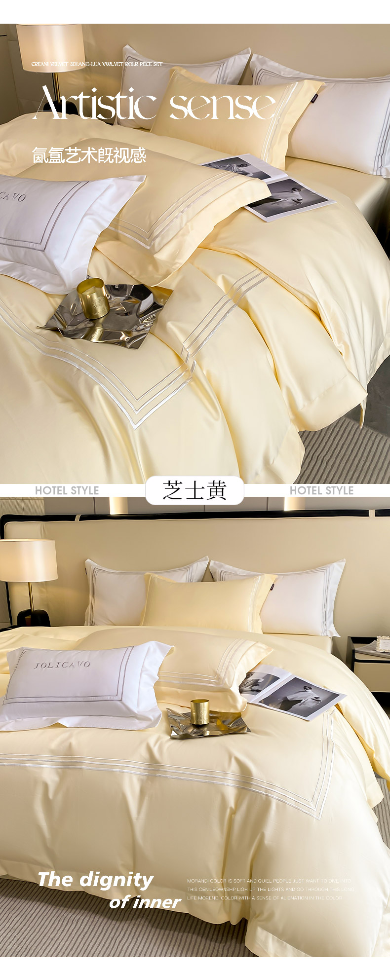 商品名称:2024新款100支长绒棉酒店风四件套全棉纯棉纯色简约床单被套轻奢床笠款床上用品 洛卡-芝士黄