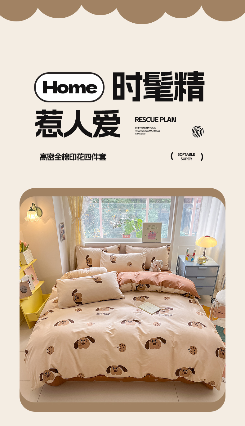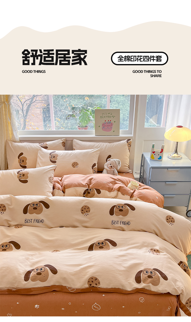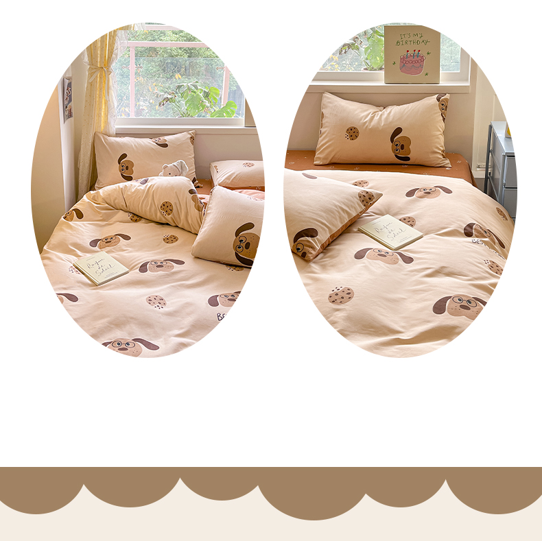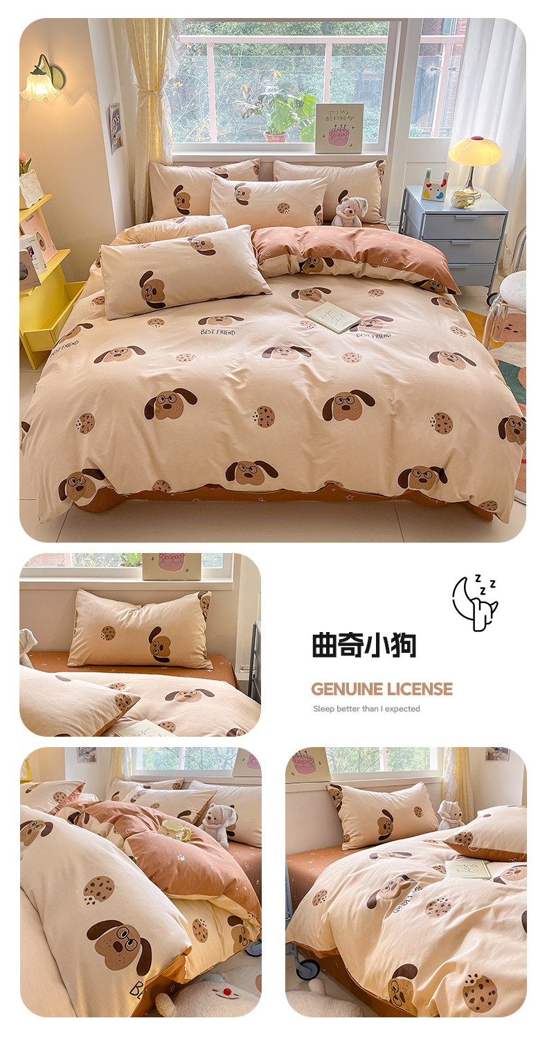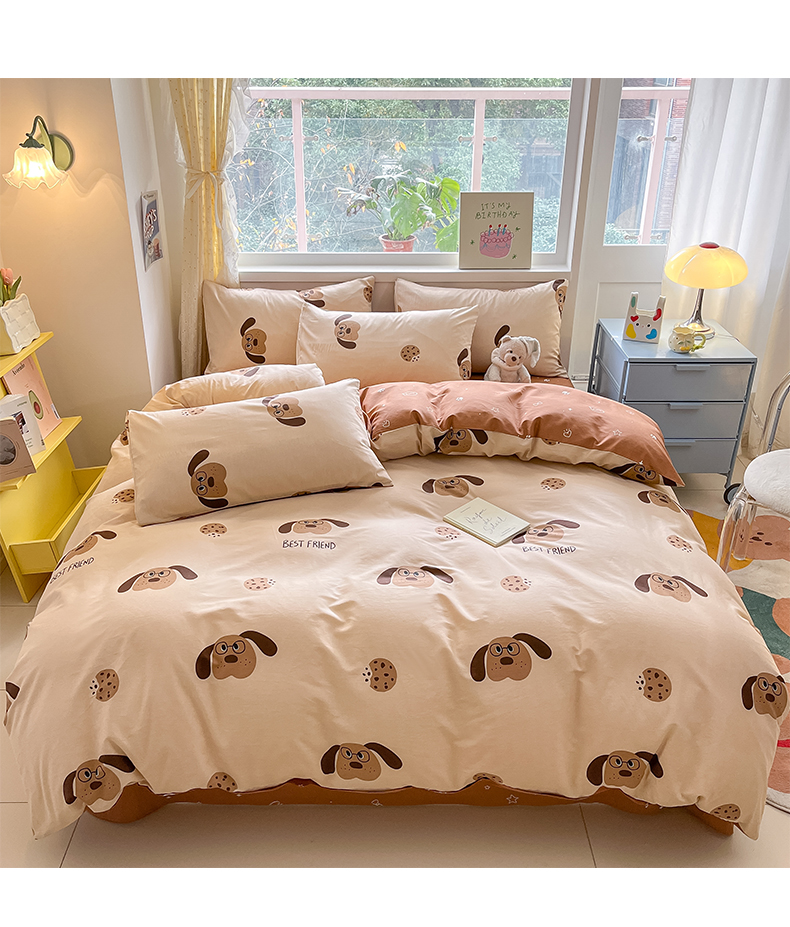 雅居纺 2024新款高密全棉13070印花四件套 曲奇小狗