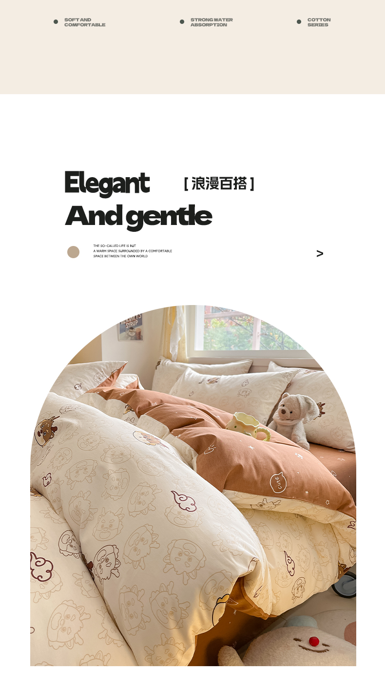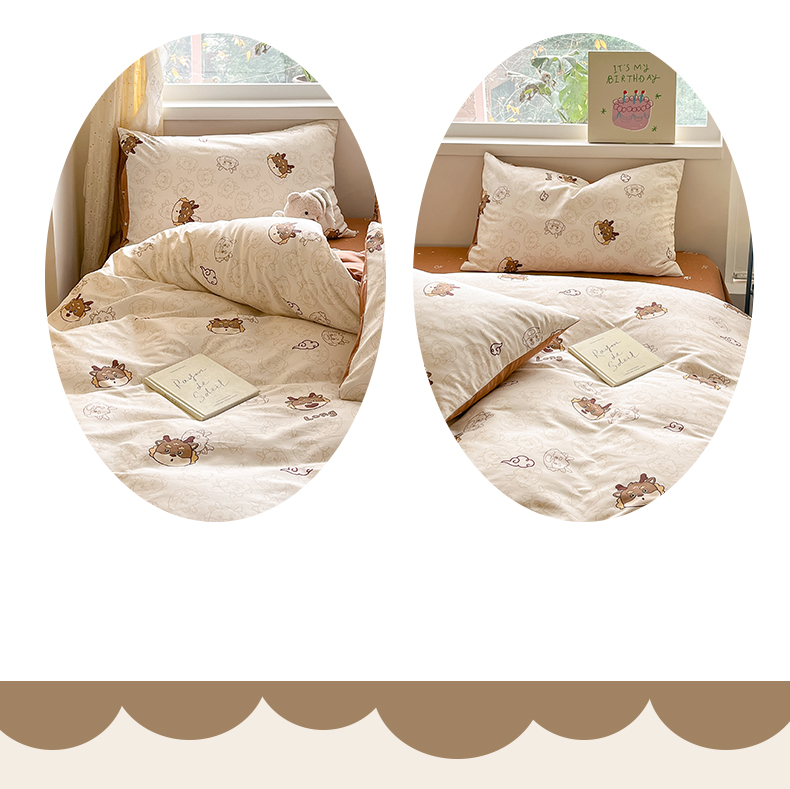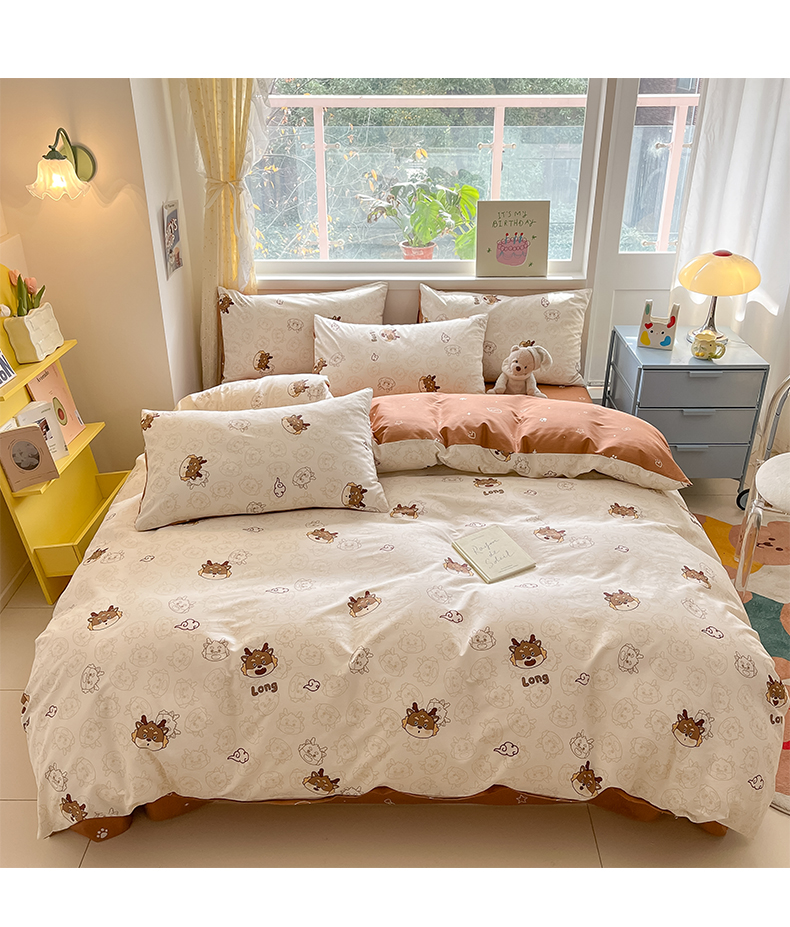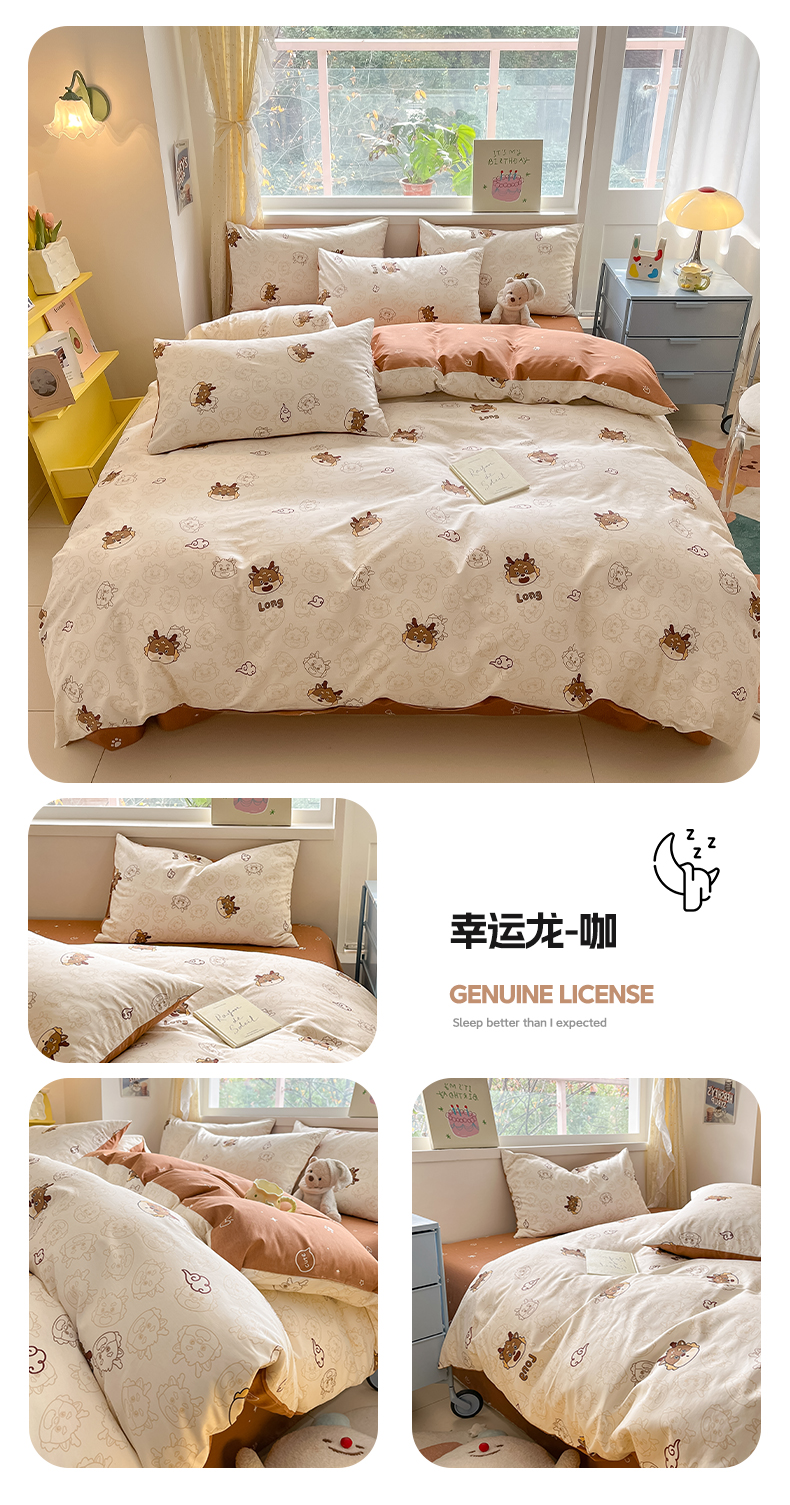 雅居纺 2024新款高密全棉13070印花四件套 幸运龙-咖