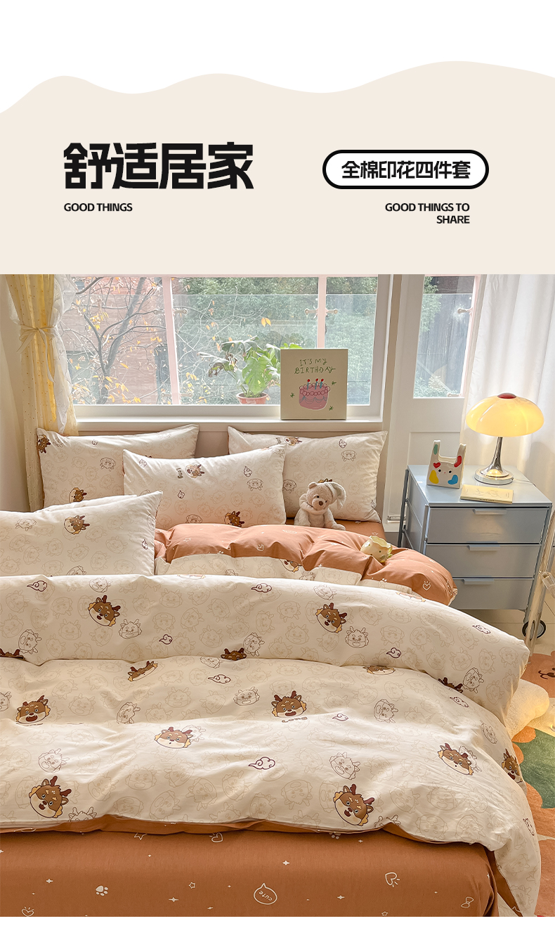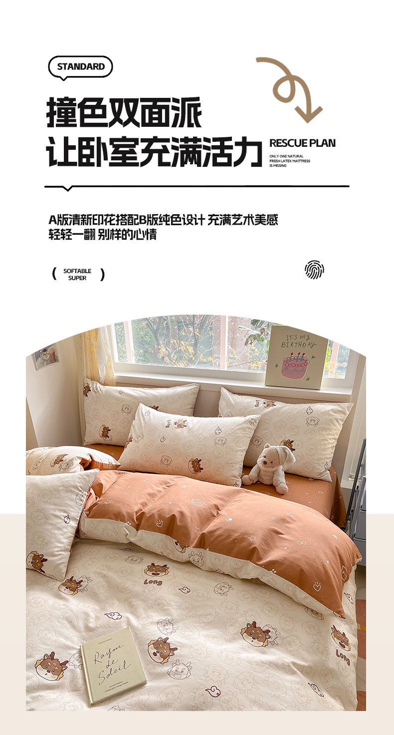 (总)雅居纺家纺 2026新款全棉小清新印花四件套,HI小狗,暴富,草莓蓝花,粉色熊熊,红红火火,简笔画小兔,蓝条花朵兔,绿色小兔,森林乐园,绅士快乐狗,贪睡猫猫,贪玩家族,贪玩小兔兔,祥瑞,小黑猫咪,幸福花朵,幸福兔-蓝,熊熊小汽车,紫色千鸟格