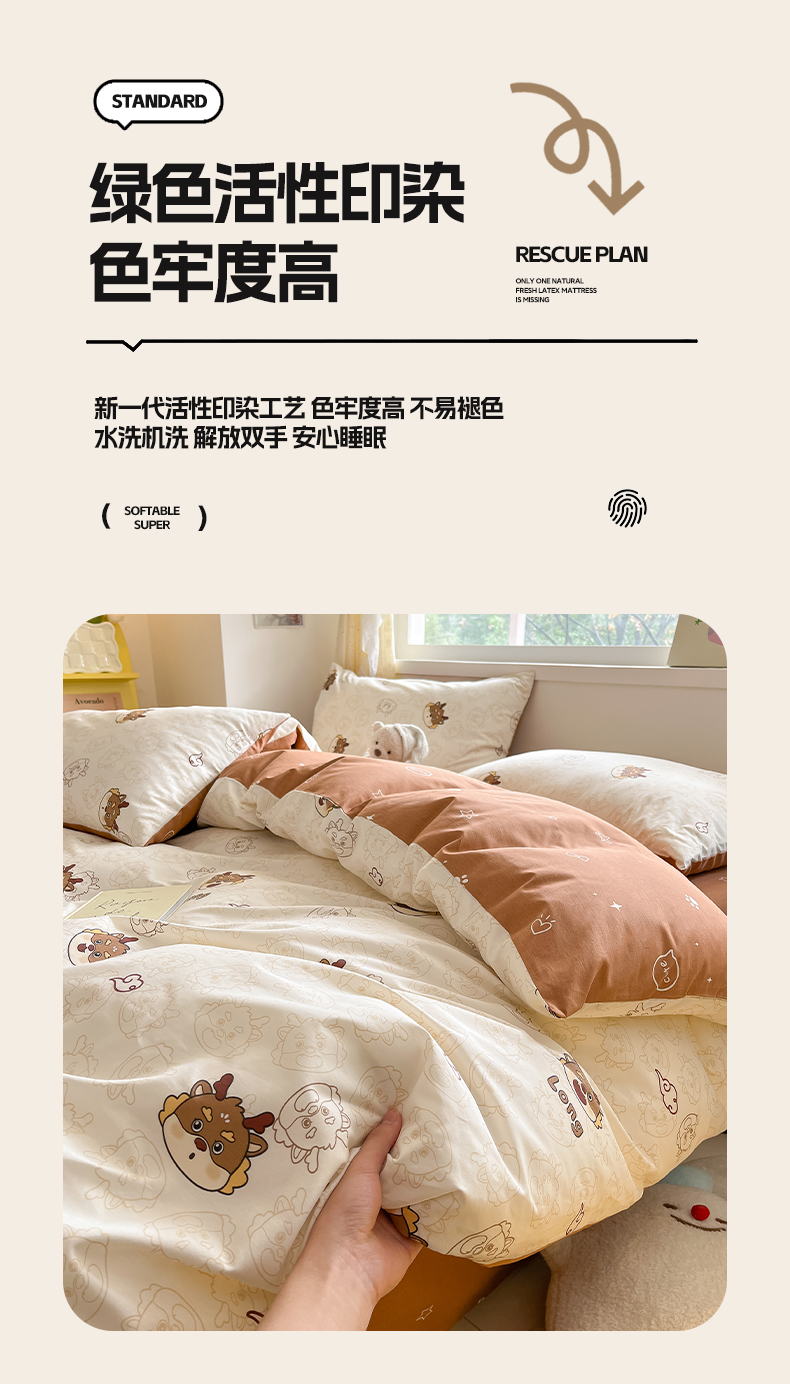 (总)雅居纺家纺 2022新款13070全棉印花四件套,波纹,多彩,简笔画,莓关系,奶油绿豹纹,倾心,数字