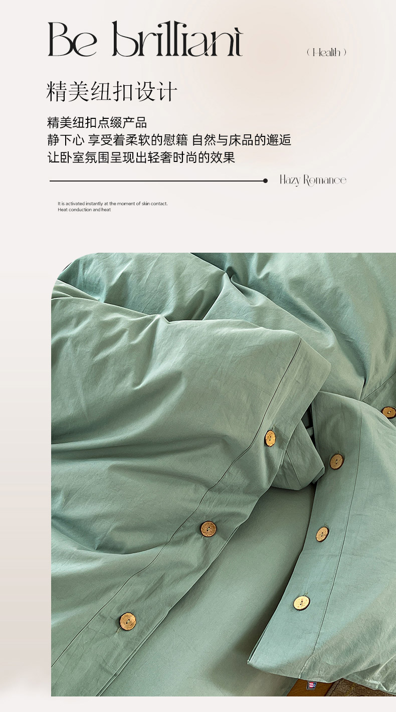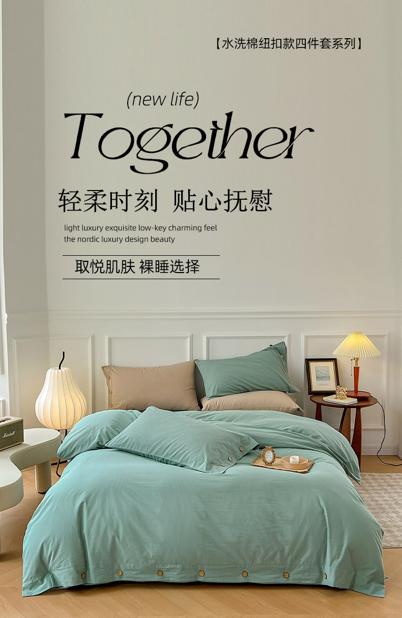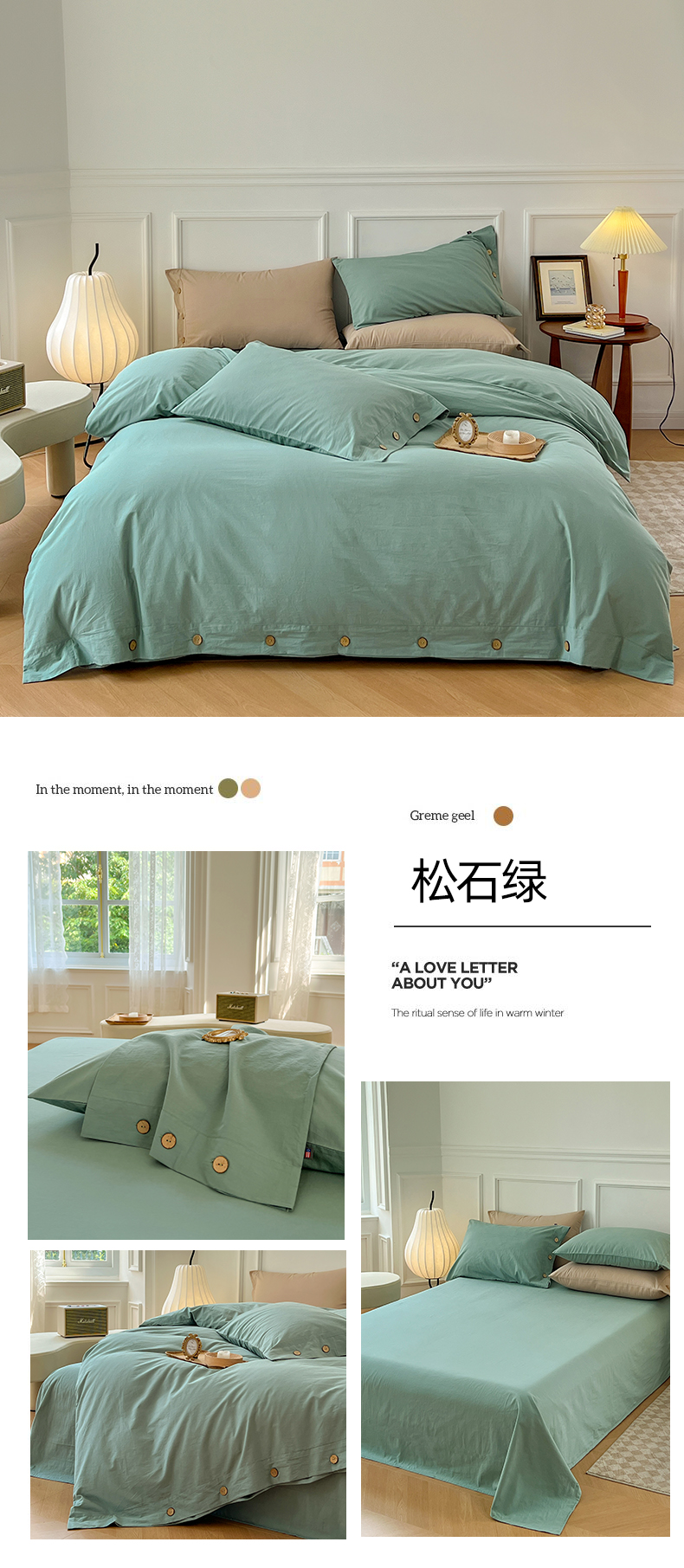 当前位置: 91家纺网 > 商品网购 > 床品套件 > 四件套 > 水洗棉四件套 > yyds网供 2024新款纽扣款无印风四件套非全棉纯棉日式水洗棉三件套轻奢INS风(含买家秀) 松石绿-无印风纽扣款