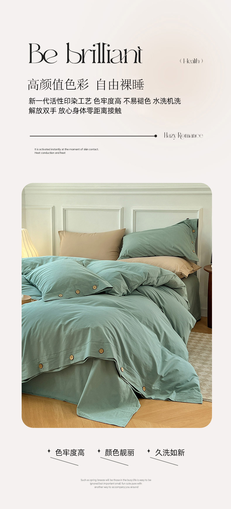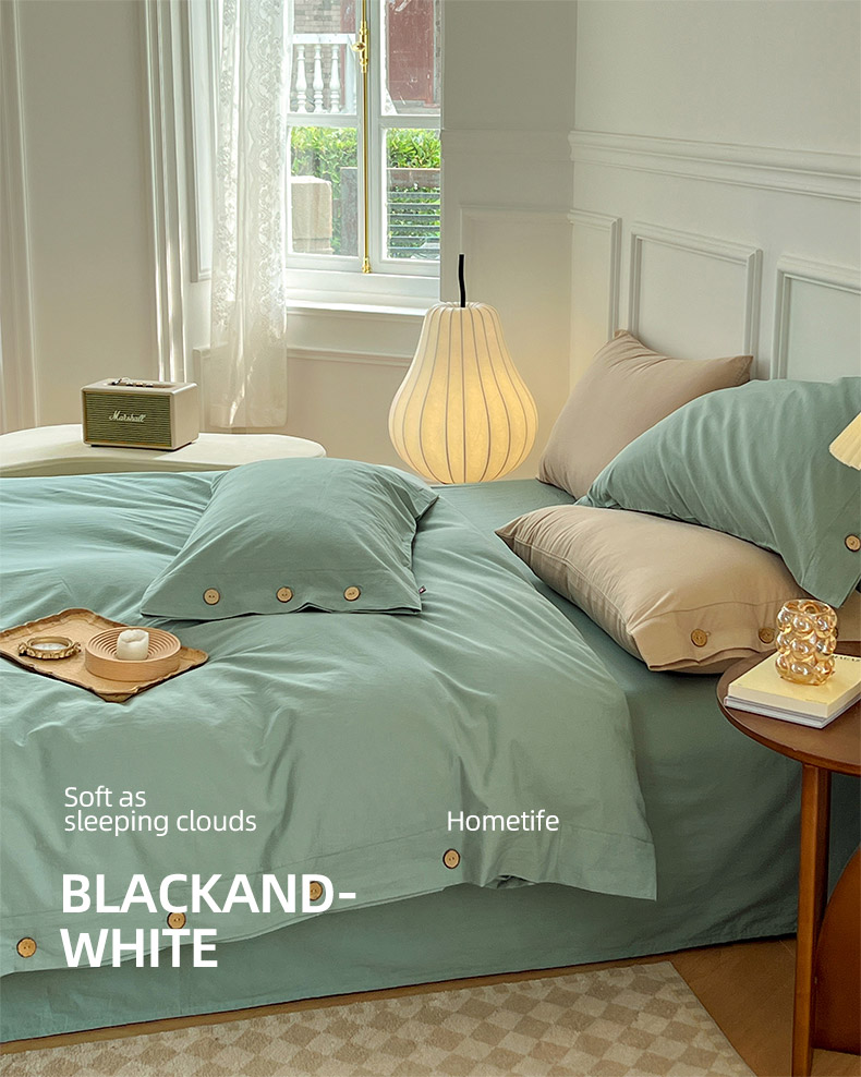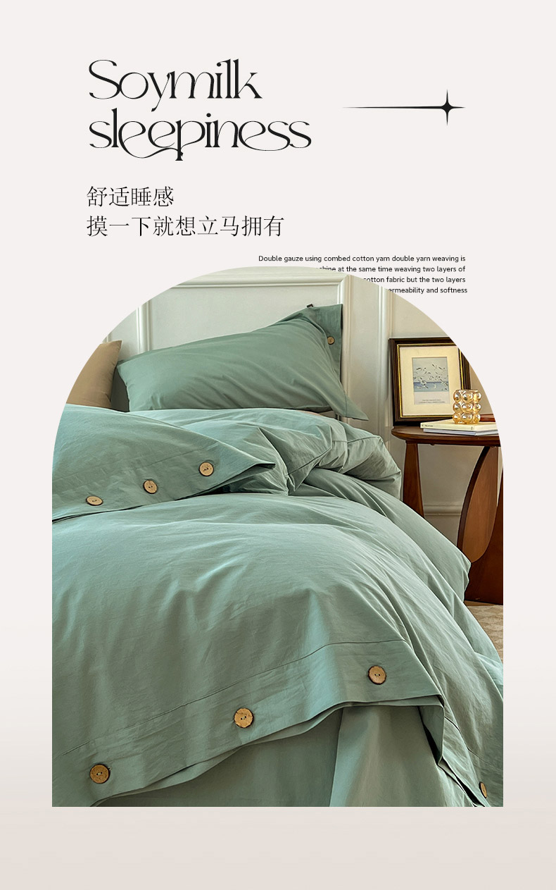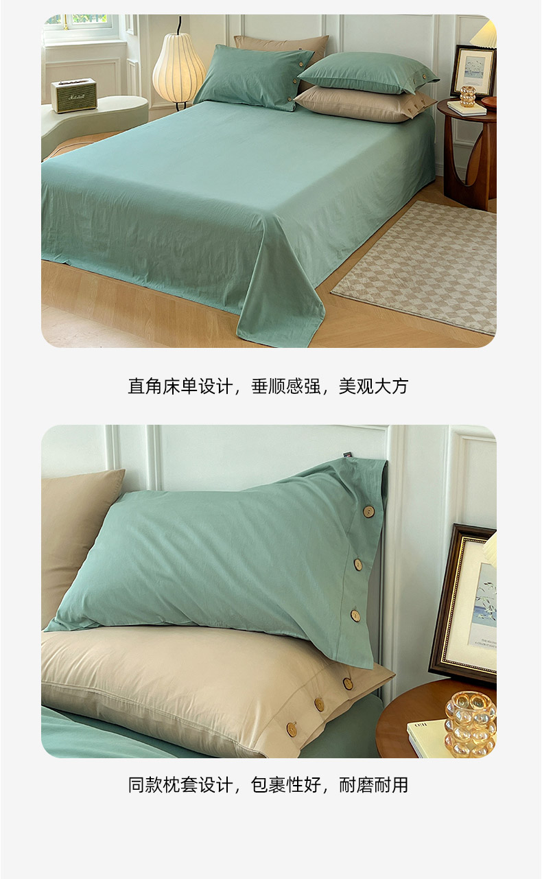 当前位置: 91家纺网 > 商品网购 > 床品套件 > 四件套 > 水洗棉四件套 > yyds网供 2024新款纽扣款无印风四件套非全棉纯棉日式水洗棉三件套轻奢INS风(含买家秀) 松石绿-无印风纽扣款