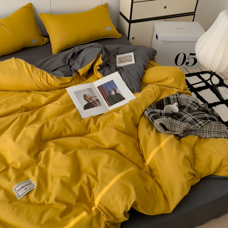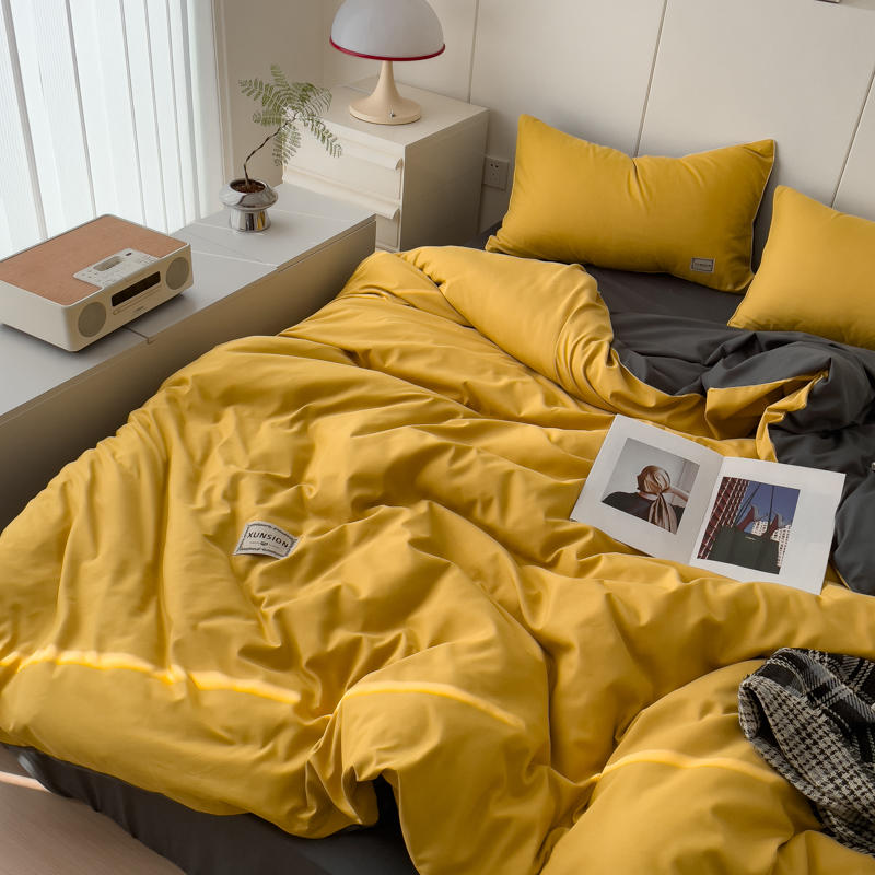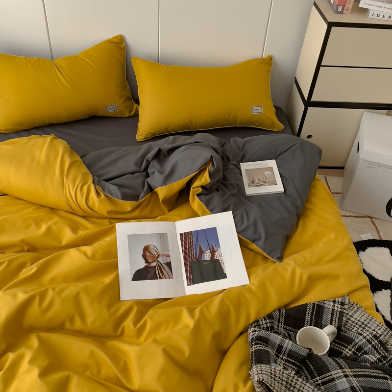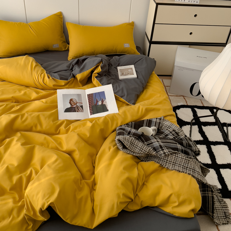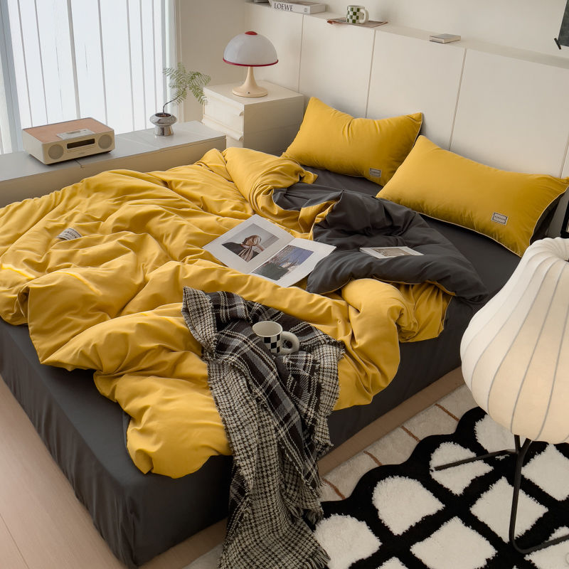 商品名称:蓝淋 2024新春款日式简约婴儿可以啃咬的超柔混搭水洗棉四件套 姜黄+深灰