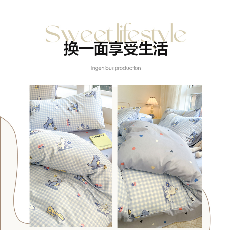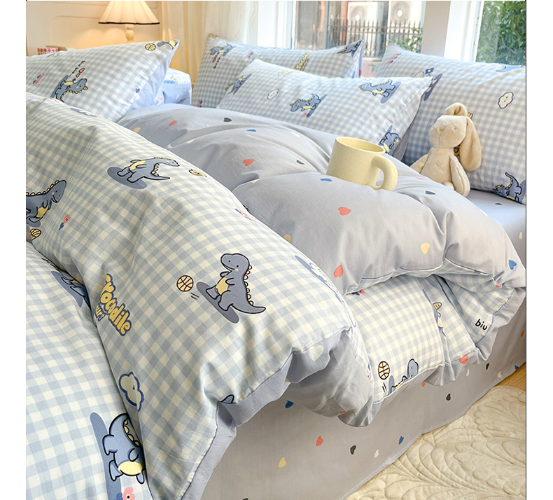 当前位置: 91家纺网 > 商品网购 > 床品套件 > 四件套 > 全棉普通四件套 > 麦伦家居 2024春夏新品ins小清新卡通全棉四件套 爱心小恐龙