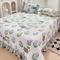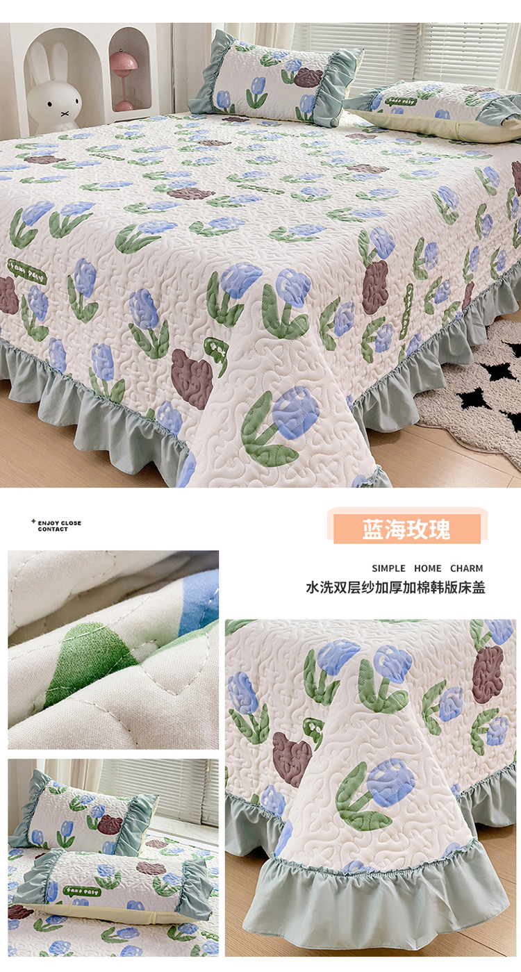 纽缦家纺 2024水洗双层纱加厚加棉韩版床盖 蓝海玫瑰