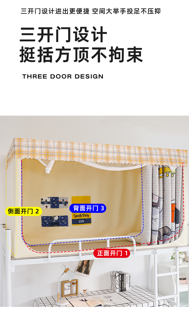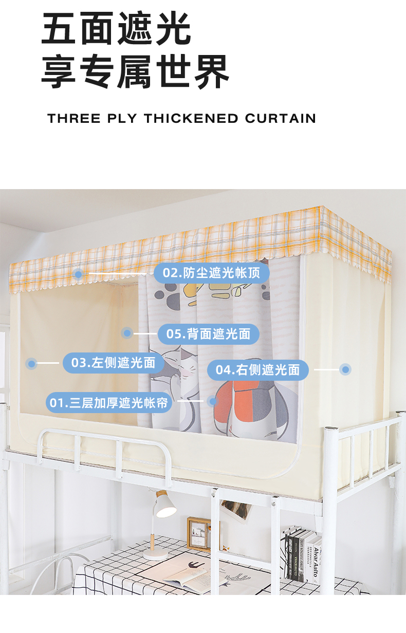 (总)宅部落 2025新款学生床帘宿舍上下铺床帘式强遮光学生蚊帐-纯色系列,纯色-藏蓝色,纯色-淡米黄,纯色-黑色,纯色-灰色,纯色-天蓝色