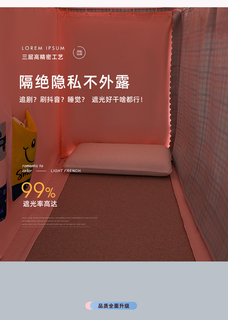(总)宅部落 2025新款学生床帘宿舍上下铺床帘式印花强遮光学生蚊帐-纯色系,藏蓝,灰色,浅卡其,浅蓝