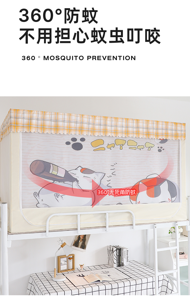 商品名称:宅部落 2024新款特价款学生上下铺蚊帐强遮光床帘一体式蚊帐 贪吃猫三三