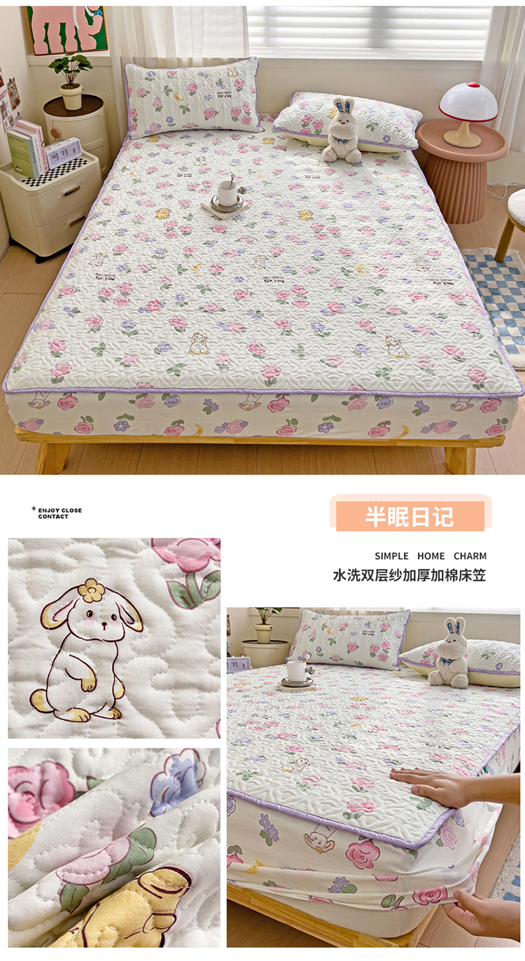 纽缦家纺 水洗双层纱加厚加棉床笠-床垫保护套 半眠日记
