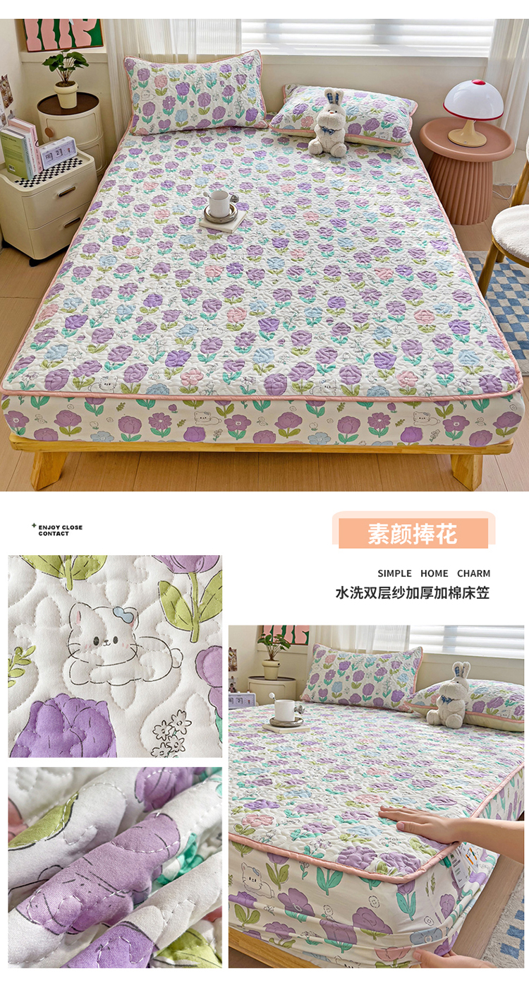 纽缦家纺 水洗双层纱加厚加棉床笠-床垫保护套 素颜捧花