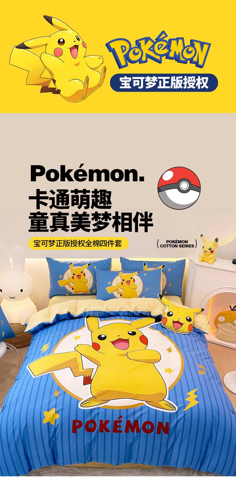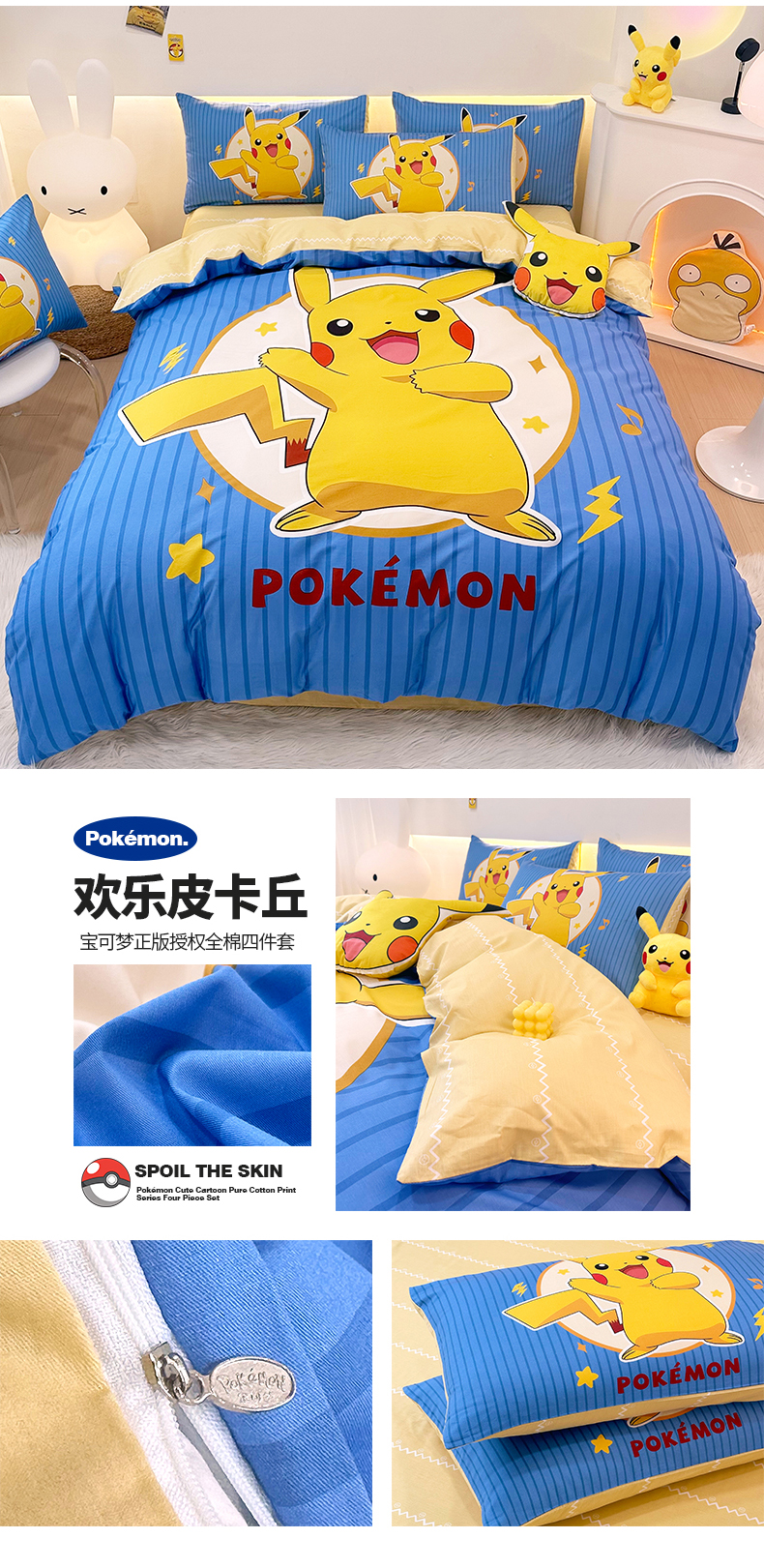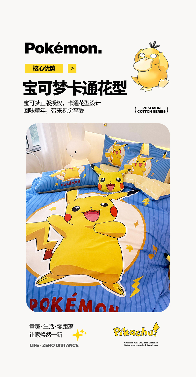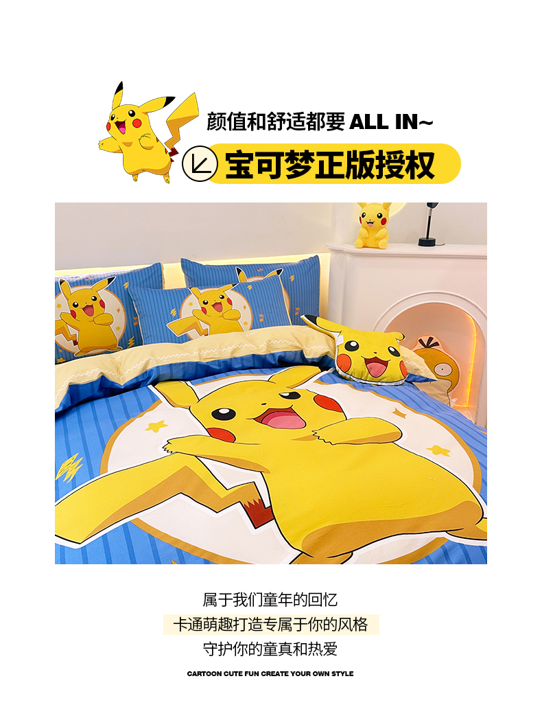 当前位置: 91家纺网 > 商品网购 > 床品套件 > 四件套 > 全棉普通四件套 > 卧趣 2024新款宝可梦正版授权全棉印花四件套 欢乐皮卡丘