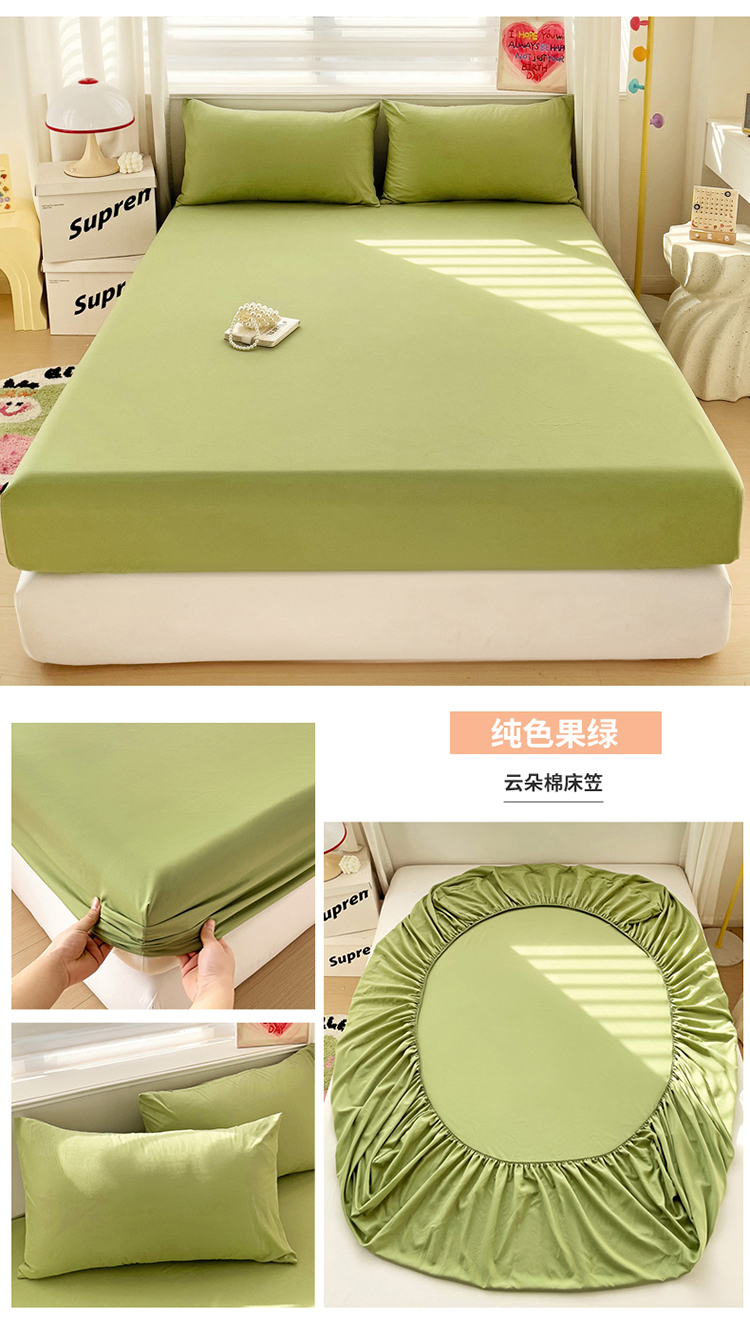 纽缦家纺 2024素色无印风云朵棉单床笠 纯色果绿