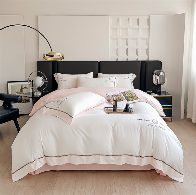 (总)金麦家纺 2025新款冰丝绣花四件套-心愿系列,心愿粉色,心愿燕麦奶,心愿天空蓝,心愿淡雅绿,心愿浅灰