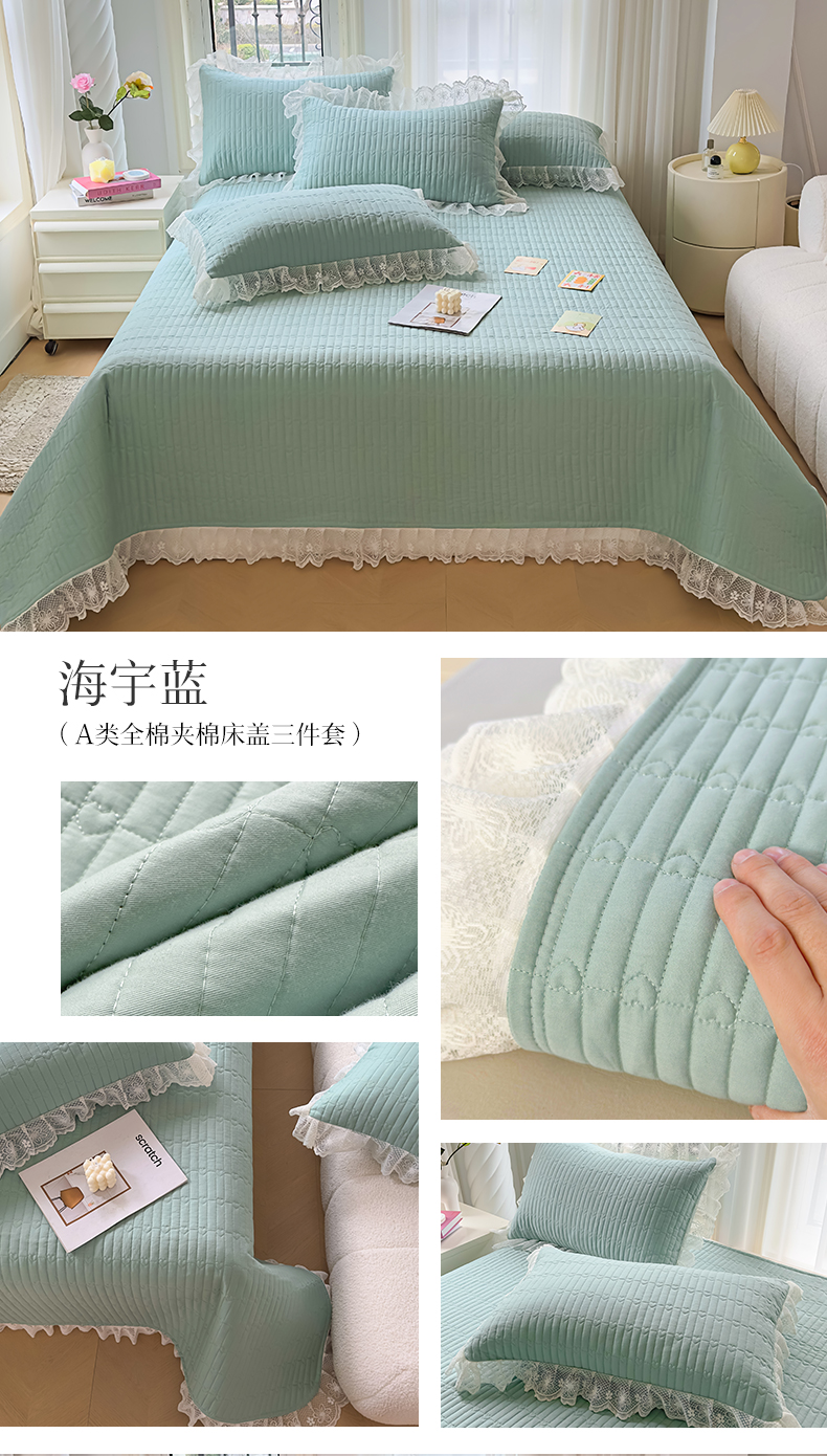 商品名称:宜凡家纺 2024新款双面全棉印花系列床盖三件套 海宇蓝