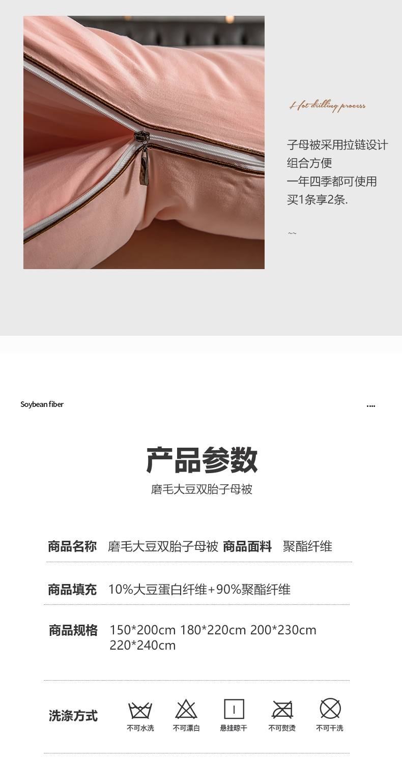 商品名称:金帛坊 2024新款磨毛大豆双胎子母被子被芯 淡粉