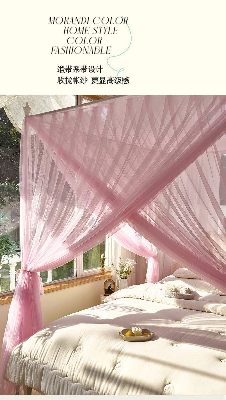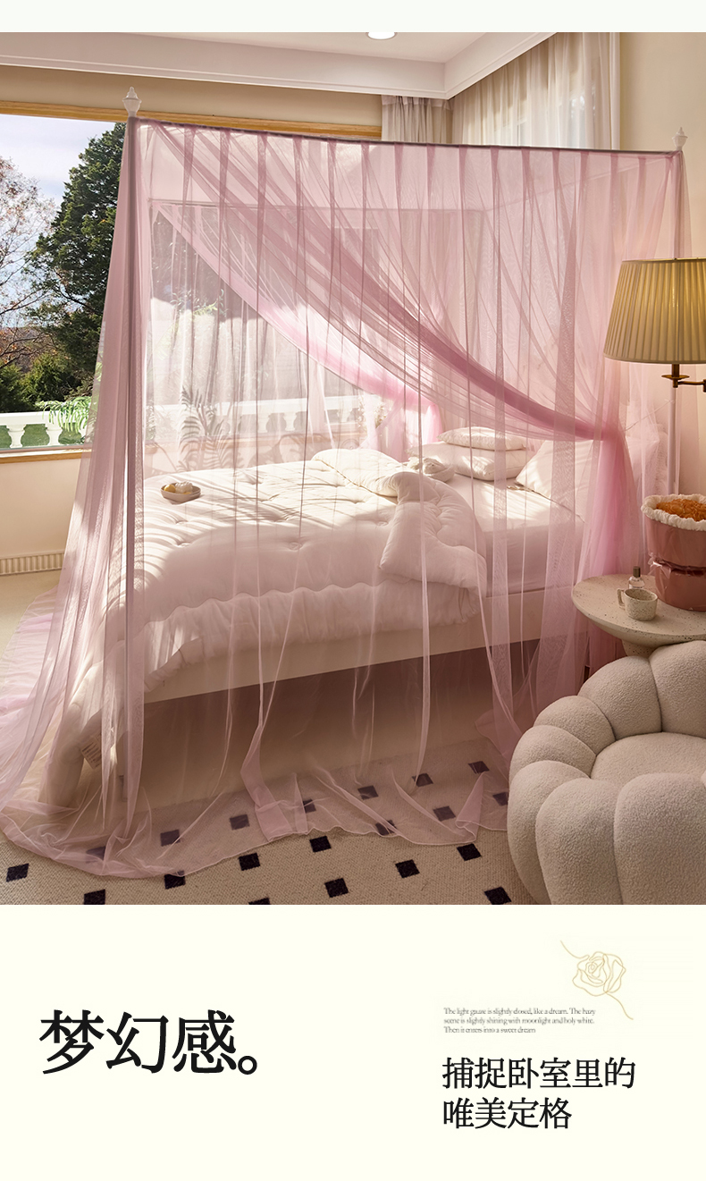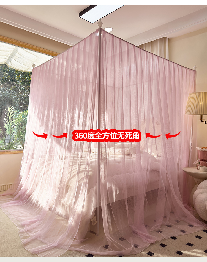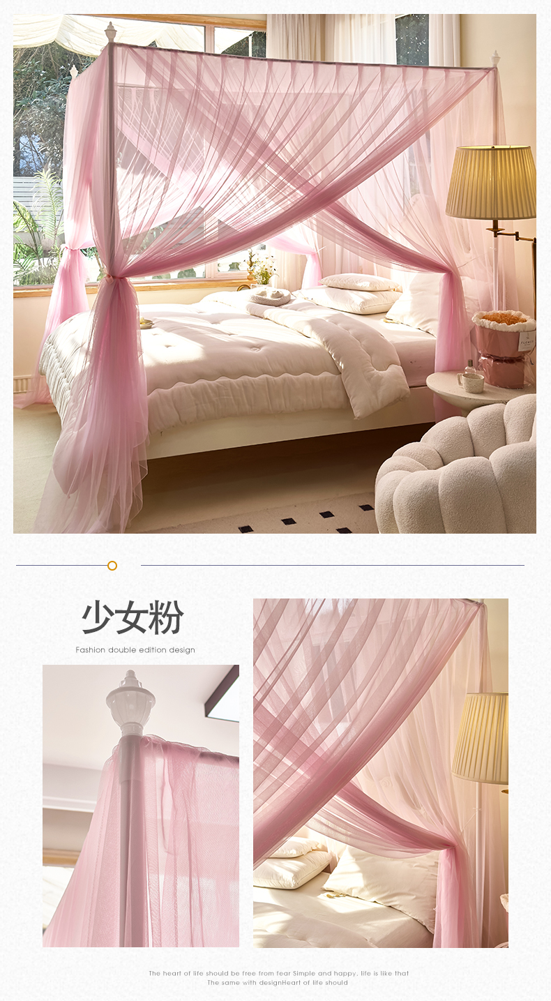商品名称:新太阳蚊帐 2025新款轻奢落地宫廷蚊帐 双层轻奢款-少女粉